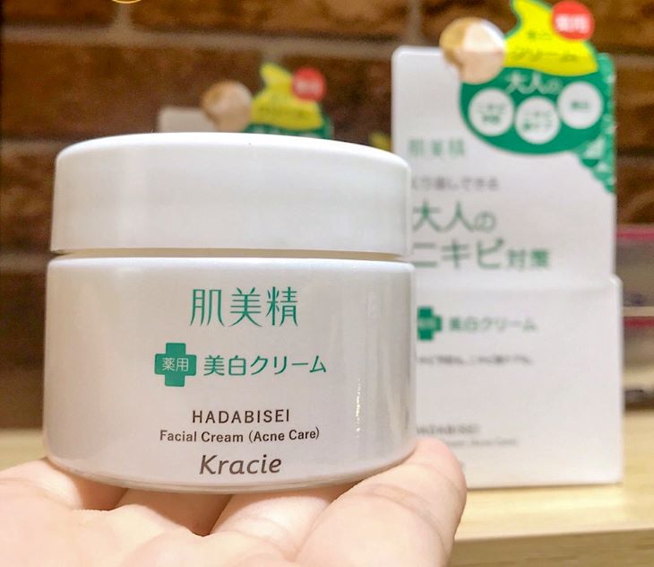 - Kem dưỡng da trị mụn Kracie Hadabisei Facial Cream (Acne Care) dùng tốt cả ngày và đêm.