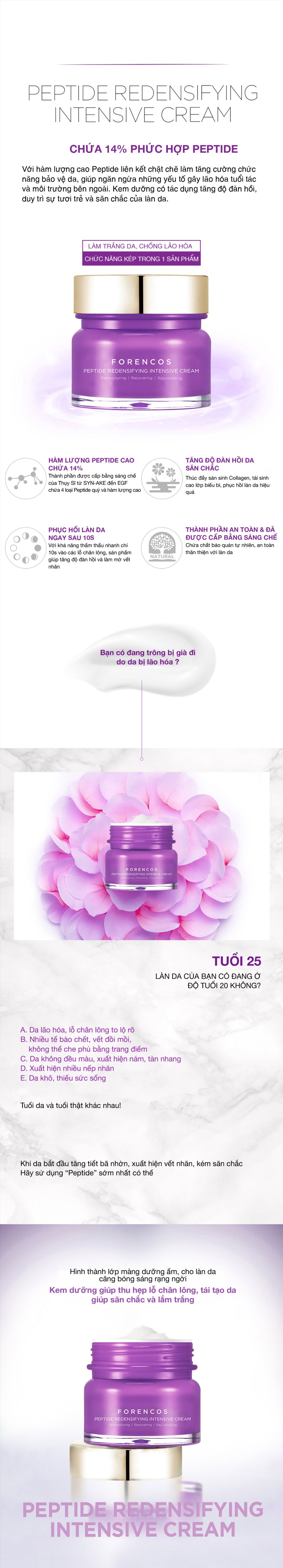 - Kem Dưỡng Trắng Da Ban Đêm Forencos Peptide Redensifying Intensive Cream là một trong những loại kem dưỡng nâng tone da, sáng da nhanh chóng và luôn nằm trong top các sản phẩm bán chạy nhất tại Hàn Quốc.