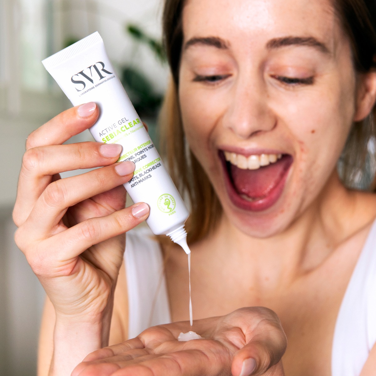 Kem Dưỡng Trị Mụn, Kiểm Soát Dầu SVR Sebiaclear Active là kem dưỡng trị mụn thuộc thương hiệu SVR sản phẩm chăm sóc da cải tiến chuyên sâu được điều chế để xử lý các vấn đề về mụn với công thức chứa 14% Gluconolactone và Acid salicylic giúp cải thiện kết cấu da, giảm vết thâm, làm thông thoáng lỗ chân lông, làm giảm và ngăn chặn sự hình thành của mụn. 4% Niacinamide (Vitamin B3) giúp hạn chế sự sinh trưởng của vi khuẩn, giảm viêm và làm dịu vết đỏ.