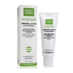 Kem Dưỡng MartiDerm Acniover Cremigel Active 40ml là kem dưỡng ngày và đêm với kết cấu dạng gel-cream dành cho làn da dầu mụn. Công thức sản phẩm chứa thành phần Salicylic Acid và Niacinamide có khả năng loại bỏ tế bào chết, kháng viêm, điều tiết bã nhờn, từ đó làm giảm mụn và cải thiện kích thước lỗ chân lông, giúp duy trì trạng thái da ổn định khoẻ mạnh, đủ ẩm và sạch thoáng mịn màng, không còn bóng dầu. Đây cũng là một trong ba bước cơ bản của bộ sản phẩm Acniover do MartiDerm thiết kế để chống lại mụn trứng cá - Kiểm soát (Control).