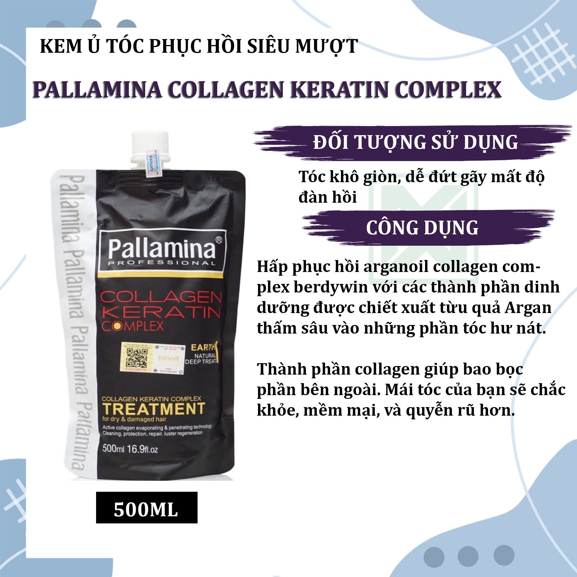 Phục hồi tóc hư tổn: Thành phần collagen và keratin giúp tái tạo cấu trúc tóc, giảm gãy rụng và chẻ ngọn.