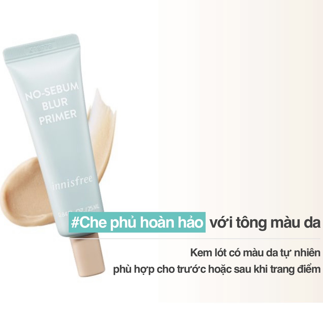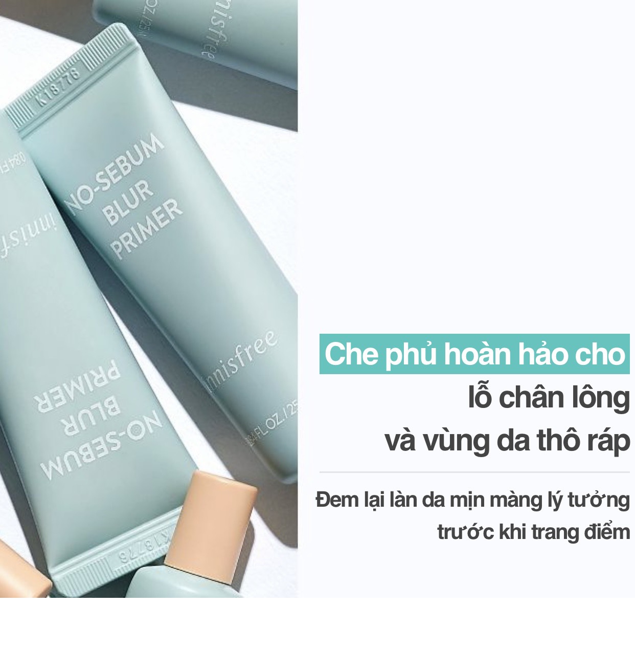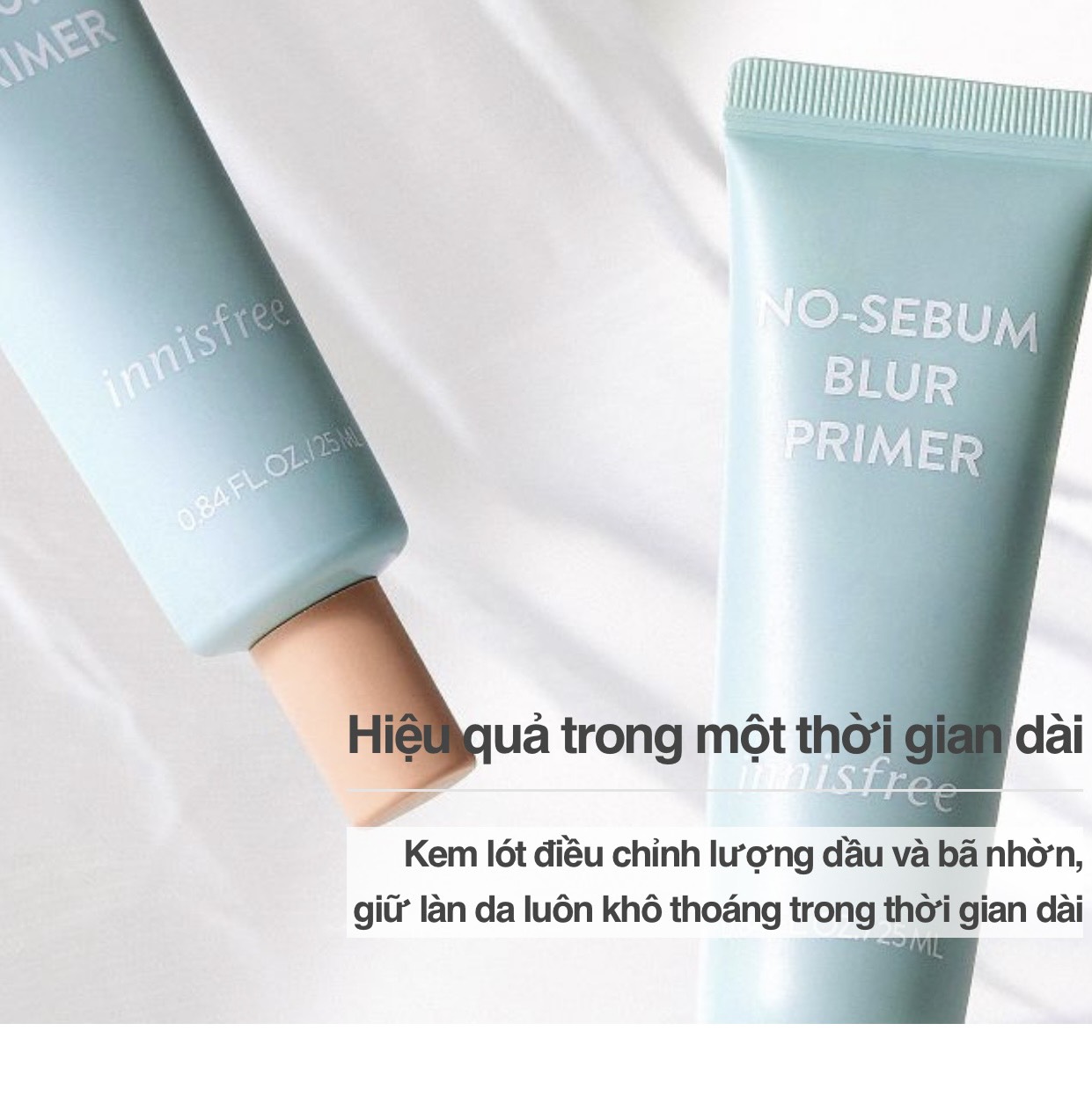 - Primer là loại kem lót đặc biệt được hoàn thiện hơn nhiều so với các loại kem lót makeup base thông thường. Kem lót kiềm dầu Innisfree No sebum Blur Primer có tone màu da giúp bạn che phủ hiệu quả các khuyết điểm trên da, giúp da mịn mượt và tự nhiên đầy sức sống, giúp giảm thiểu tức thời các nếp nhăn trên da và che phủ lỗ chân lông hiệu quả.