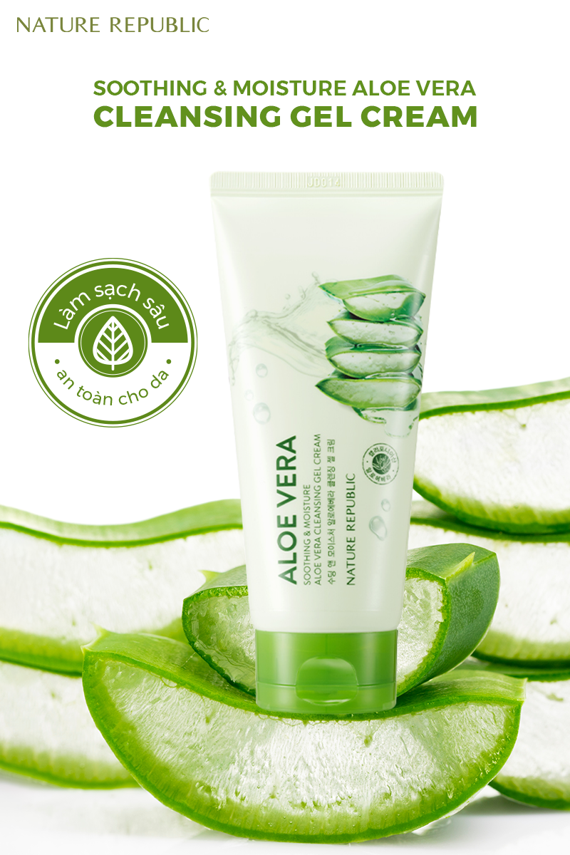 Kem Tẩy Trang Chiết Xuất Lô Hội Nature Republic Soothing & Moisture Aloe Vera Cleansing Gel Cream là kem tẩy trang với thành phần chính chứa chiết xuất từ Lô hội hữu cơ California giúp nhẹ nhàng loại bỏ lớp trang điểm, bụi bẩn và bả nhờn. Đồng thời, giữ ẩm và làm dịu da, tránh tình trạng khô căng sau khi tẩy trang, giúp da ẩm mịn, sạch sâu thuộc thương hiệu Nature Republic.