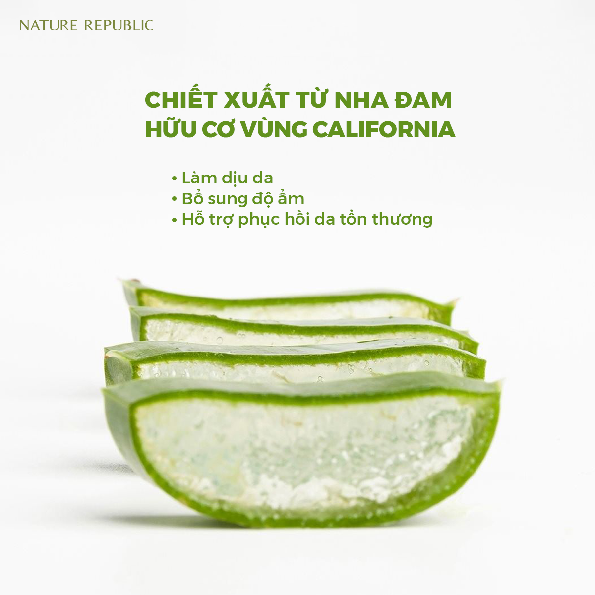 - Với thành phần chính từ chiết xuất Lô hội hữu cơ California ( Aloe Vera) có khả năng kháng khuẩn - kháng viêm, hỗ trợ làm se khít lỗ chân lông, bổ sung độ ẩm giúp da được chăm sóc một cách nhẹ nhàng, hỗ trợ phục hồi da bị tổn thương.