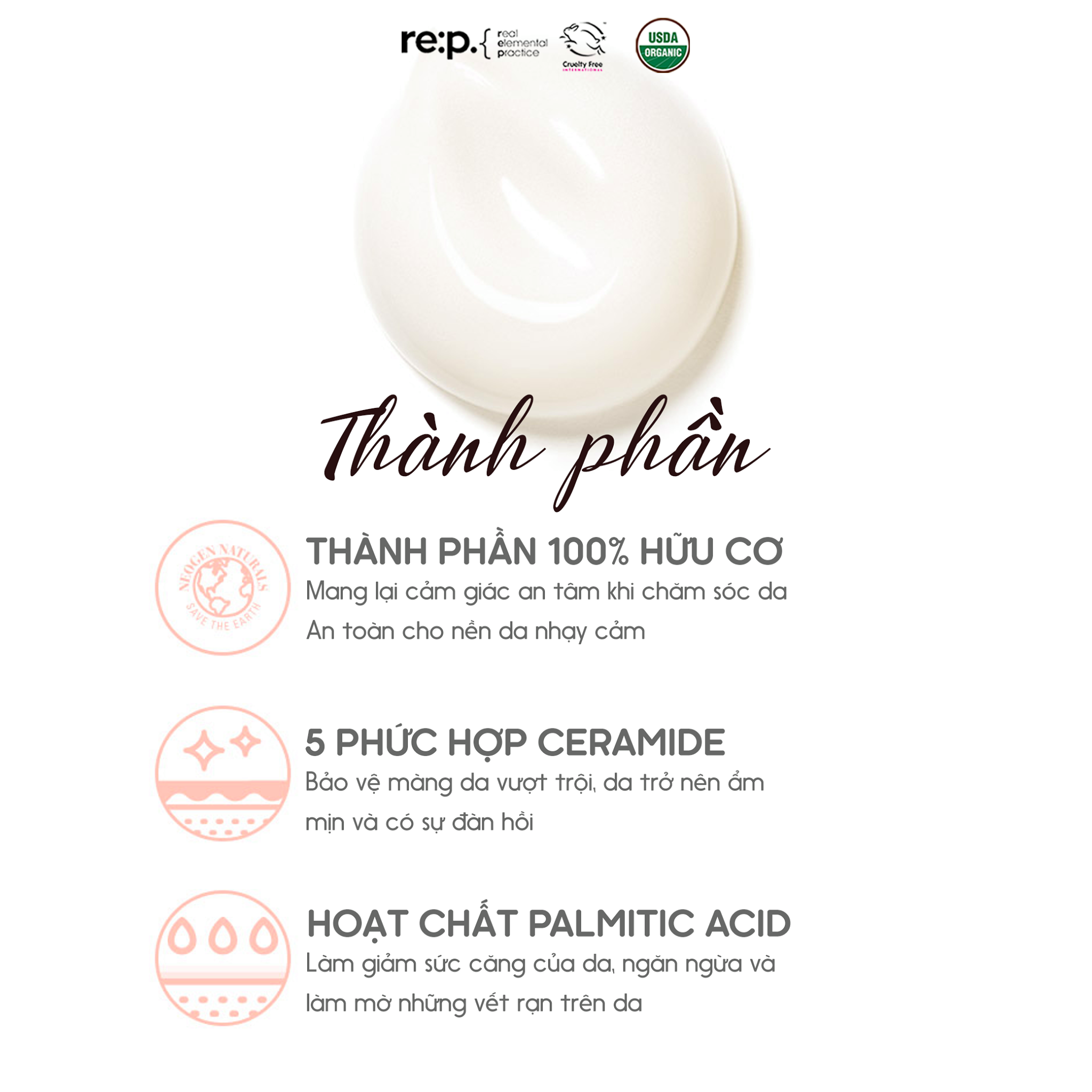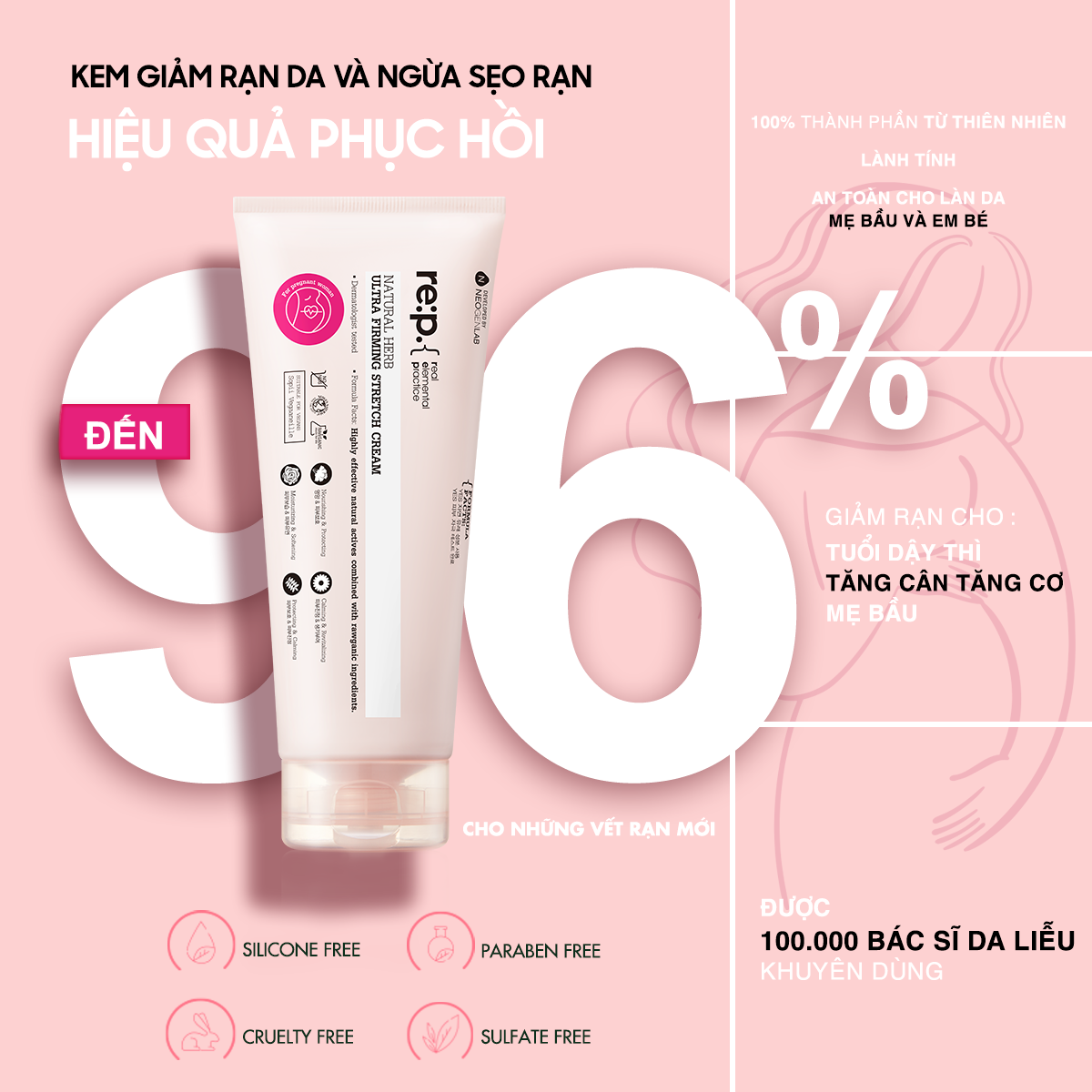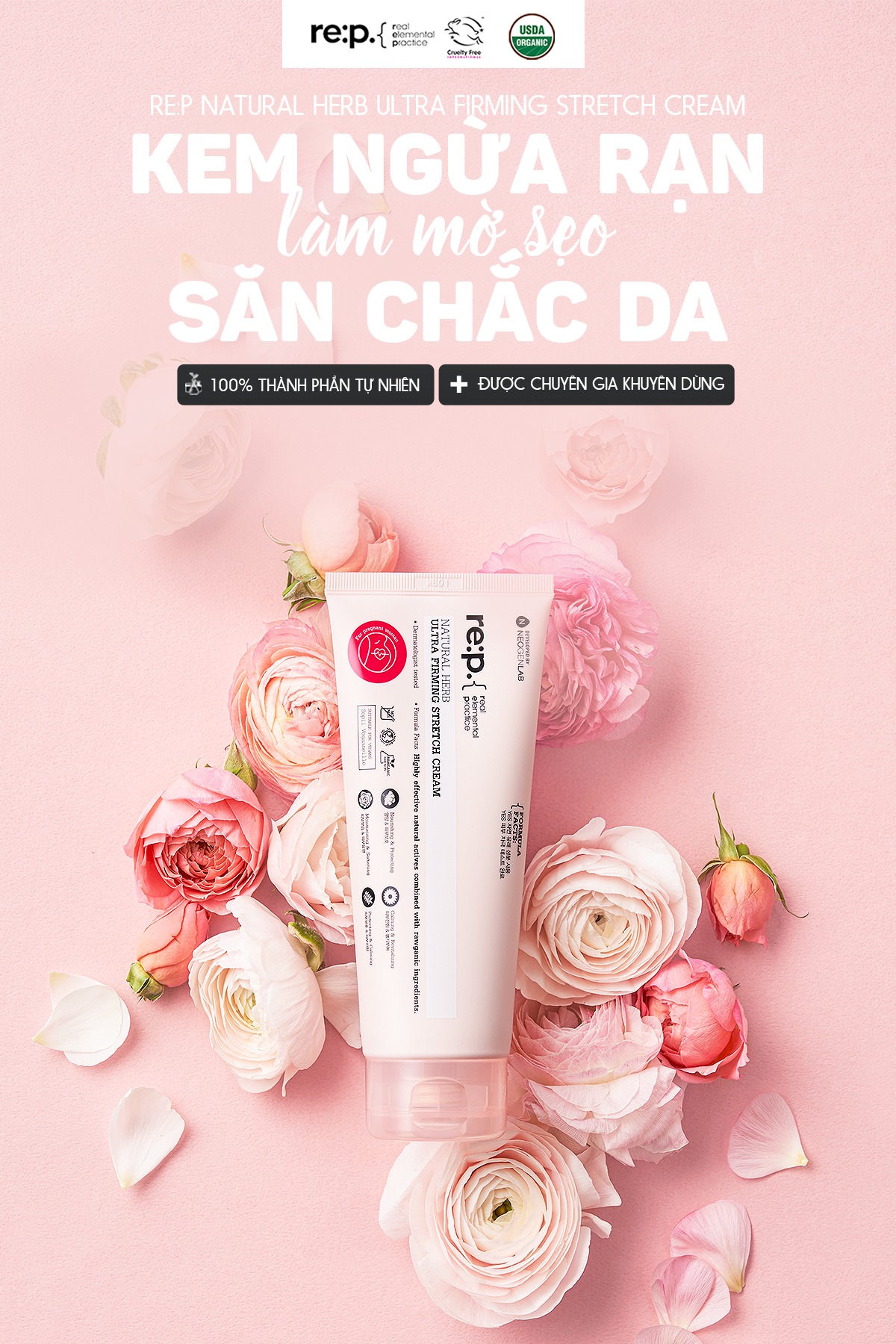 Kem Dưỡng Giảm Rạn, Săn Chắc Da Re:p Natural Herb Ultra Firming Stretch Cream là kem dưỡng thuộc thương hiệu Re:p sản phẩm chăm sóc da chuyên biệt có công thức giúp cải thiện tình trạng bên ngoài của sẹo, vết rạn da và da không đều màu. Trong đó có chứa thành phần đột phá Palmitic Acid giúp làm giảm sức căng của da, làm mờ sẹo rạn và chống mất nước.