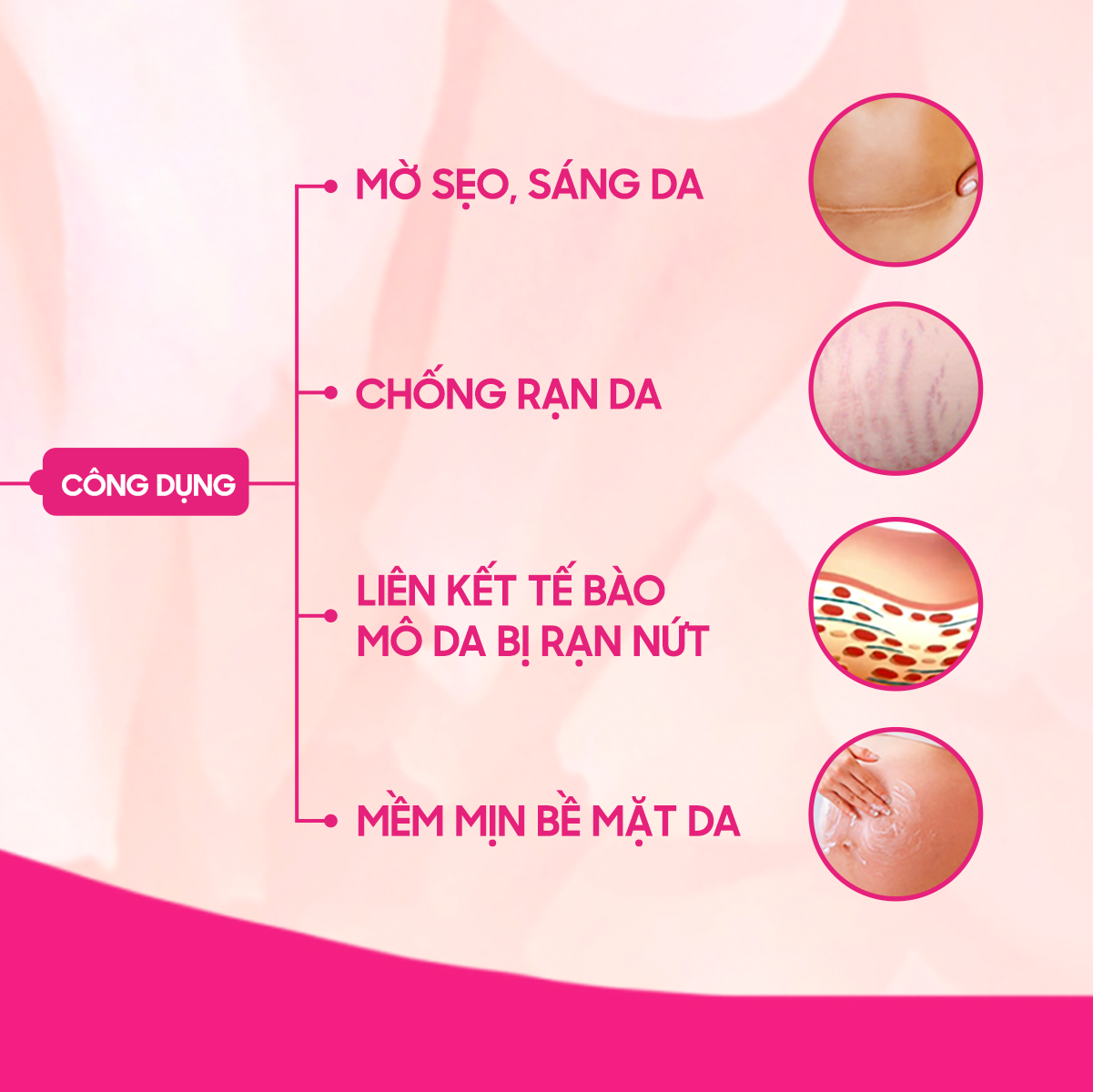 - Sản phẩm khuyên dùng cho mẹ đang mang thai và cho con bú, để hạn chế làm rạn da, giúp da săn chắc sau khi sinh.