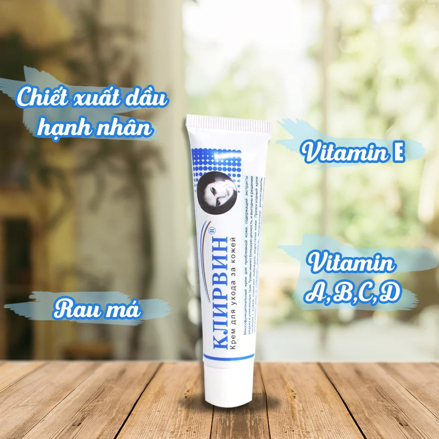 - Kem Trị Sẹo Klirvin Nga 25g được chiết xuất hoàn toàn từ các thành phần tự nhiên với các tinh dầu thảo mộc và các chất chống oxy hóa tự nhiên, cùng với vitamin E và các khoáng chất giúp cải thiện độ đàn hồi, cân bằng độ ẩm, cung cấp dinh dưỡng thúc đẩy quá trình hình thành tế bào và ngăn chặn sự sản sinh hắc tố melanin (là nguyên nhân làm thâm da).