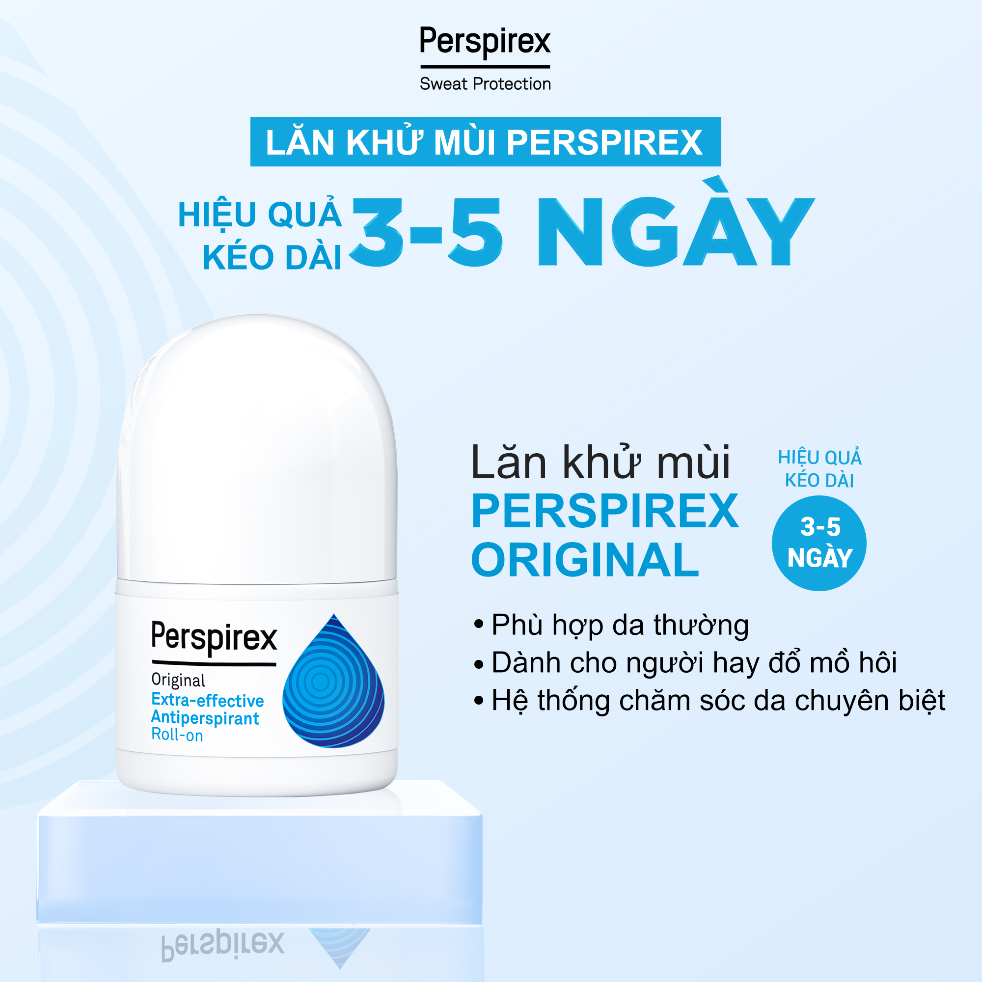 • Lăn khử mùi Perspirex Original (Xanh dương nhạt): Dành cho da thường hay đổ mồ hôi, hiệu quả kéo dài 3-5 ngày.