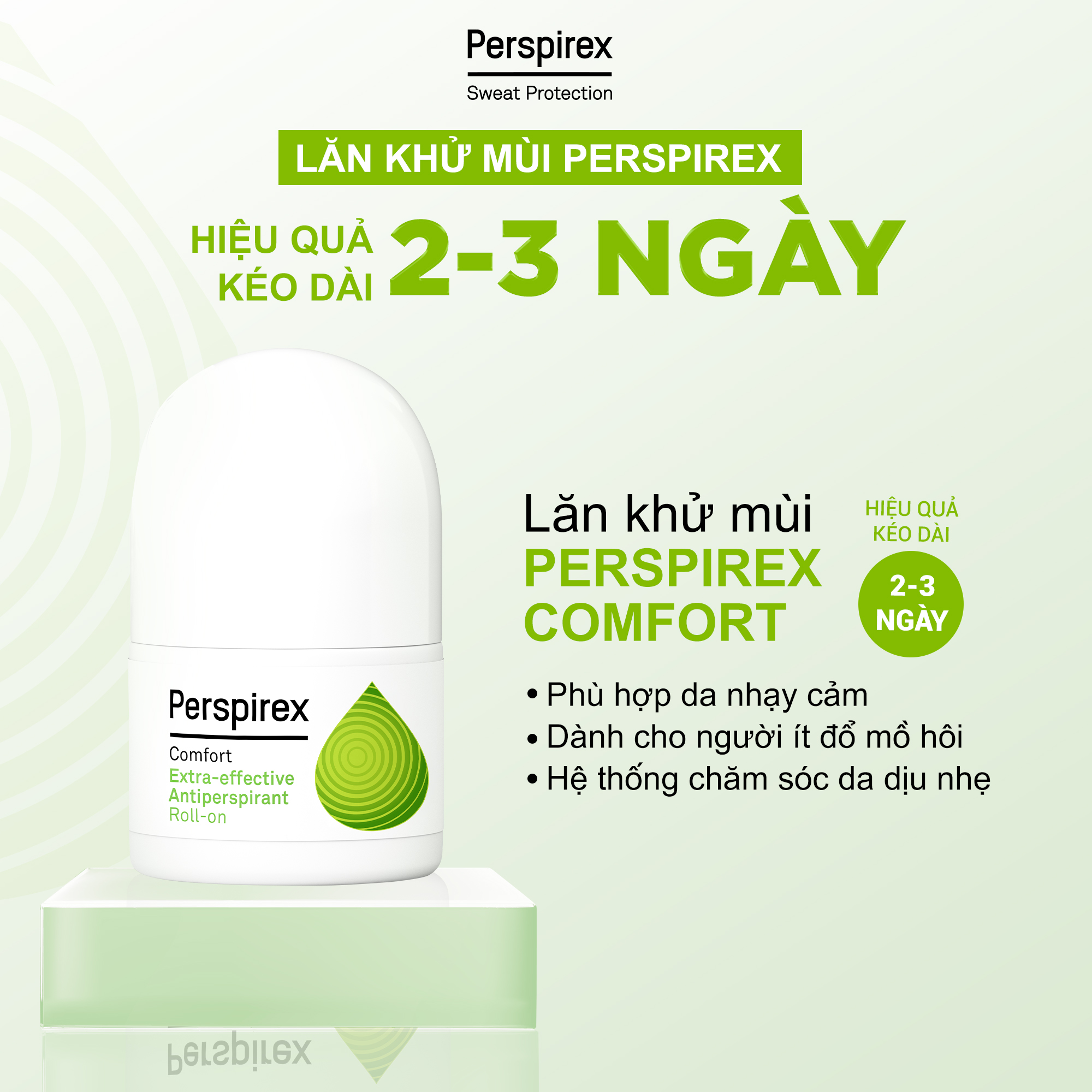 • Lăn khử mùi Perspirex Comfort (Xanh lá): Dành cho da nhạy cảm hoặc da thường ít đổ mồ hôi, hiệu quả kéo dài 2-3 ngày.