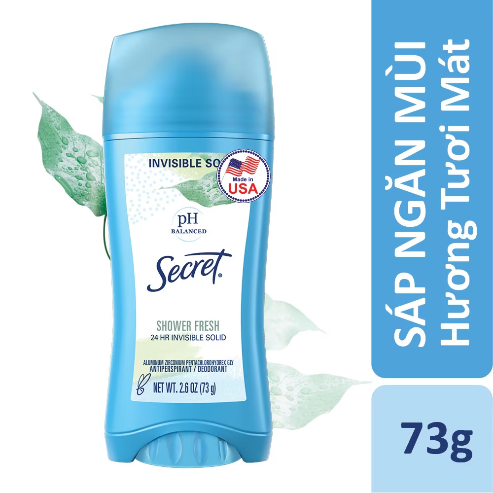 - Sáp Khử Mùi Secret chứa công thức đặc biệt có khả năng chấm dứt tình trạng mồ hôi tiết ra quá nhiều ở vùng cánh đồng thời kháng khuẩn, ngăn chặn triệt để mùi cơ thể khó chịu.