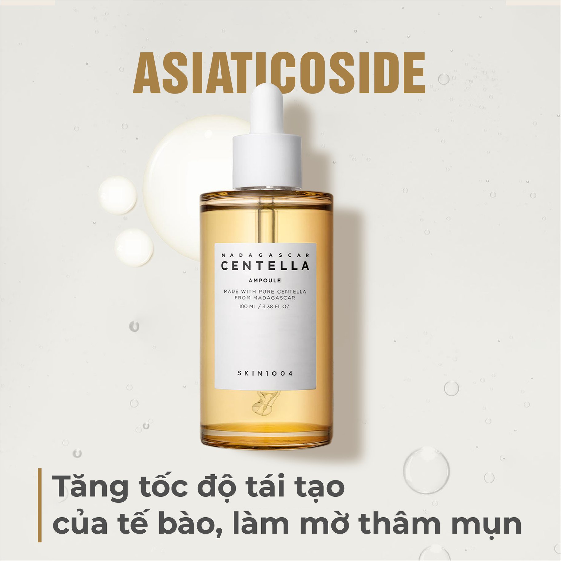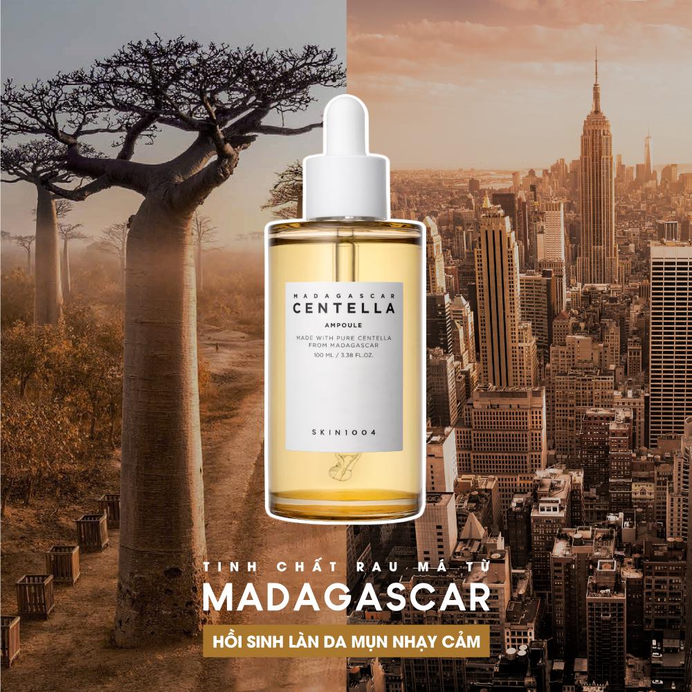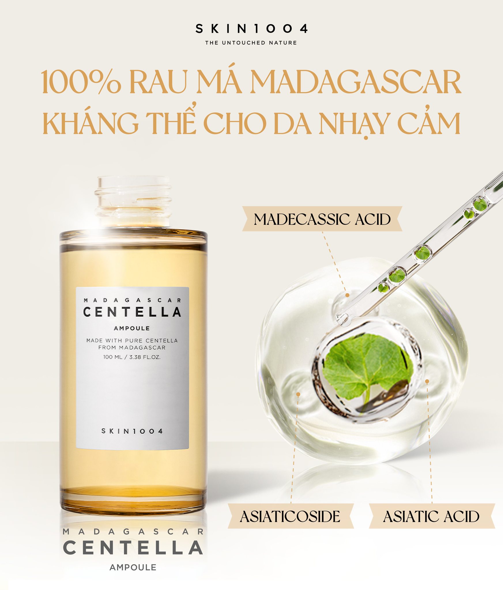 Tinh Chất Rau Má Hỗ Trợ Trị Mụn, Phục Hồi Da Skin1004 Madagascar Centella Asiatica 100 Ampoule là tinh chất với kết cấu cô đặc nhẹ nhàng nhưng mạnh mẽ này được làm từ chiết xuất rau má chứa 30% Asiaticoside, 30% Asiatic Acid và 40% Madecassic Acid cho làn da tươi sáng, nuôi dưỡng và phục hồi da thuộc thương hiệu Skin1004 đến từ Hàn Quốc.