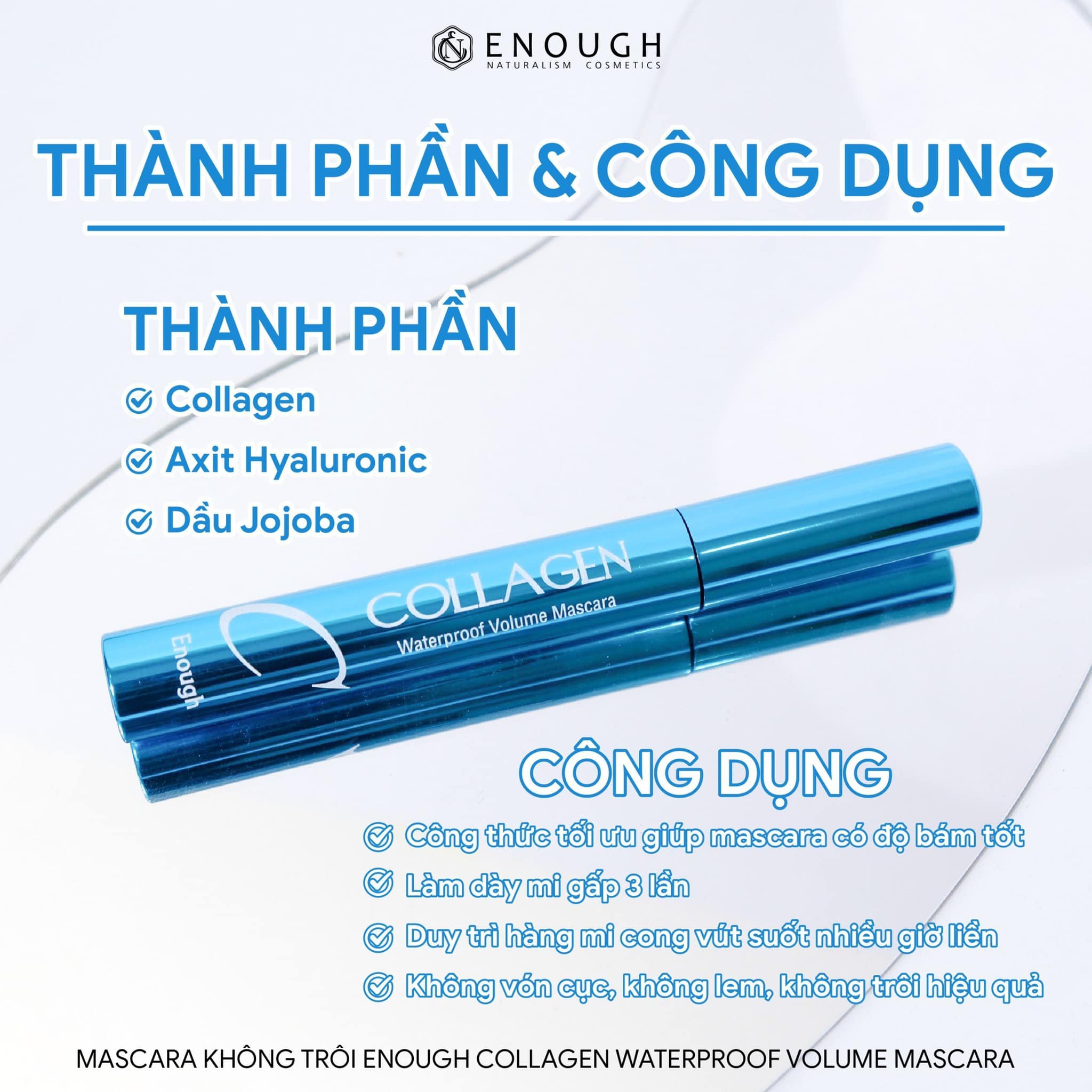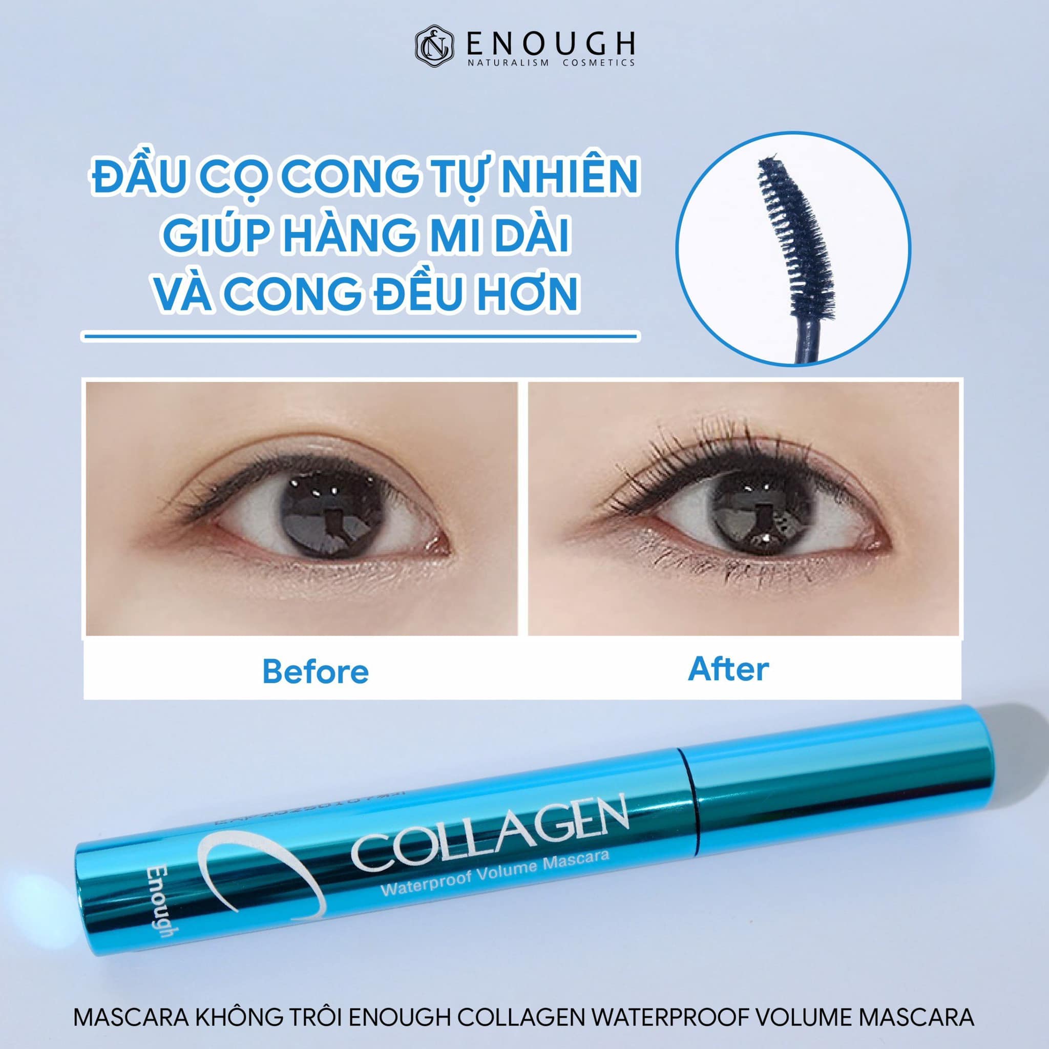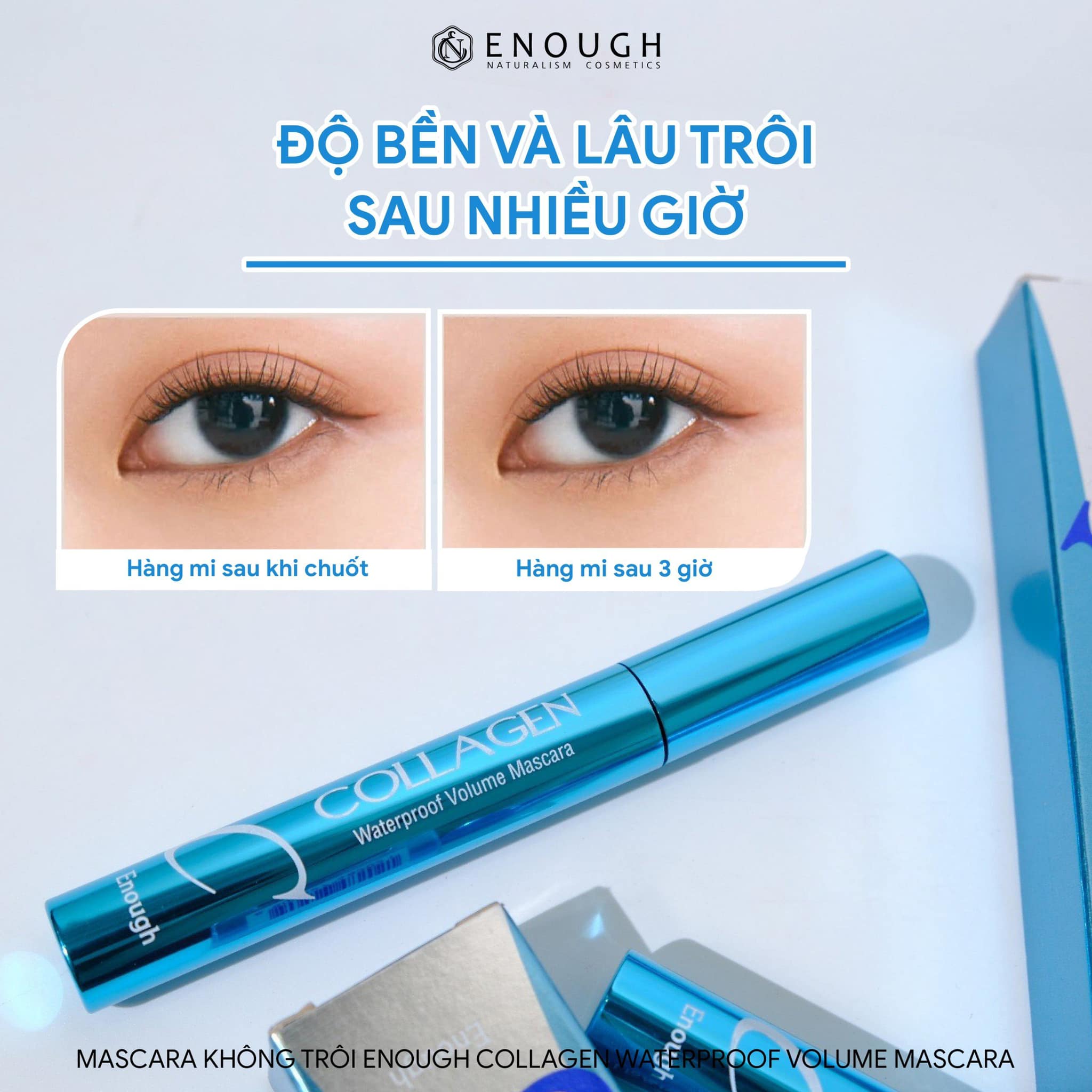 𝐌𝐚𝐬𝐜𝐚𝐫𝐚 𝐄𝐧𝐨𝐮𝐠𝐡 𝐂𝐨𝐥𝐥𝐚𝐠𝐞𝐧 𝐖𝐚𝐭𝐞𝐫𝐩𝐫𝐨𝐨𝐟 𝐕𝐨𝐥𝐮𝐦𝐞 là mascara chống thấm nước mà bạn không nên bỏ qua, mascara sẽ mang lại cho bạn hàng mi dài, cong và bồng bềnh, đồng thời mang lại hiệu ứng như búp bê. Sở hữu công nghệ chống nước độc quyền từ nhà Enough giúp các chị em có mí mắt dầu luôn duy trì hàng mi cong, tự nhiên không lo hàng mi lem luốc như những loại khác.