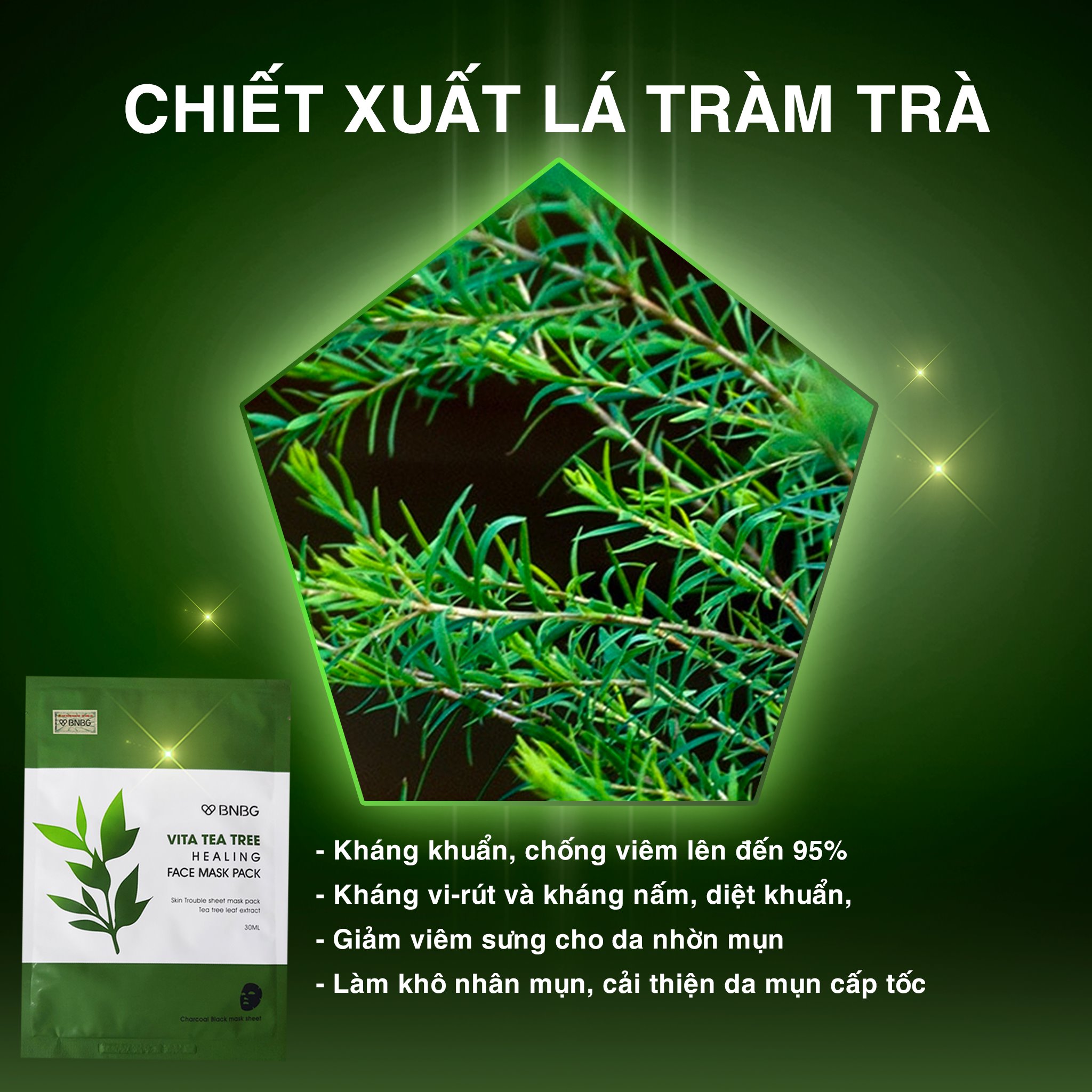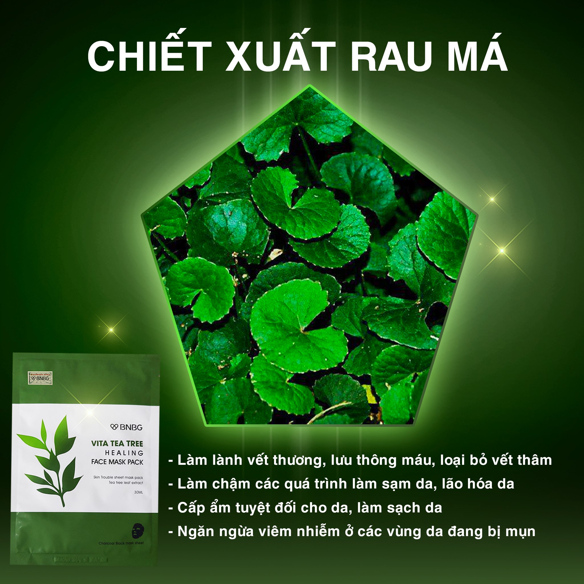 Mặt Nạ BNBG Tràm Trà Giúp Thải Độc Da, Giảm Mụn 30ml là dòng mặt nạ dưỡng da đến từ thương hiệu mỹ phẩm BNBG của Hàn Quốc, với các thành phần đặc biệt như tràm trà, rau má, hắc diện than và Retinol có khả năng giải quyết mọi tình trạng da đang gặp phải như mụn, da không đều màu, dầu thừa, bã nhờn. Sản phẩm an toàn lành tính trên mọi làn da, mang lại hiệu quả da căng bóng, mịn màng nhanh chóng.