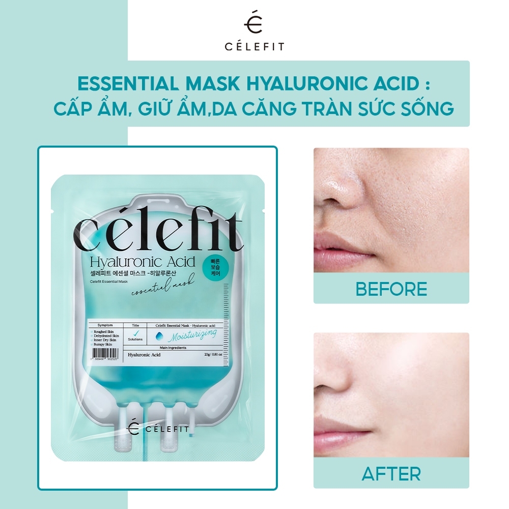 Mặt Nạ Dưỡng Da Cấp Ẩm Celefit Essential Mask là dòng sản phẩm đến từ thương hiệu chăm sóc da Celefit của Hàn Quốc. Dòng sản phẩm này là sự kết hợp vô cùng hoàn hảo giữa các thành phần có nguồn gốc từ thiên nhiên, giúp đem đến cho người sử dụng hiệu quả chăm sóc da tối ưu.