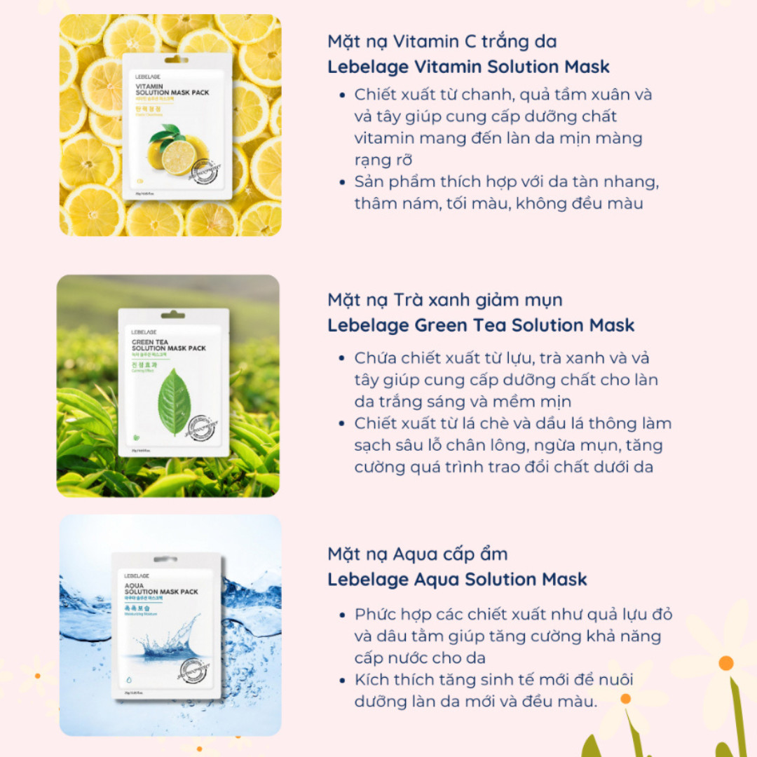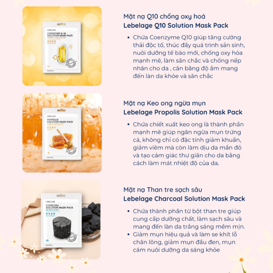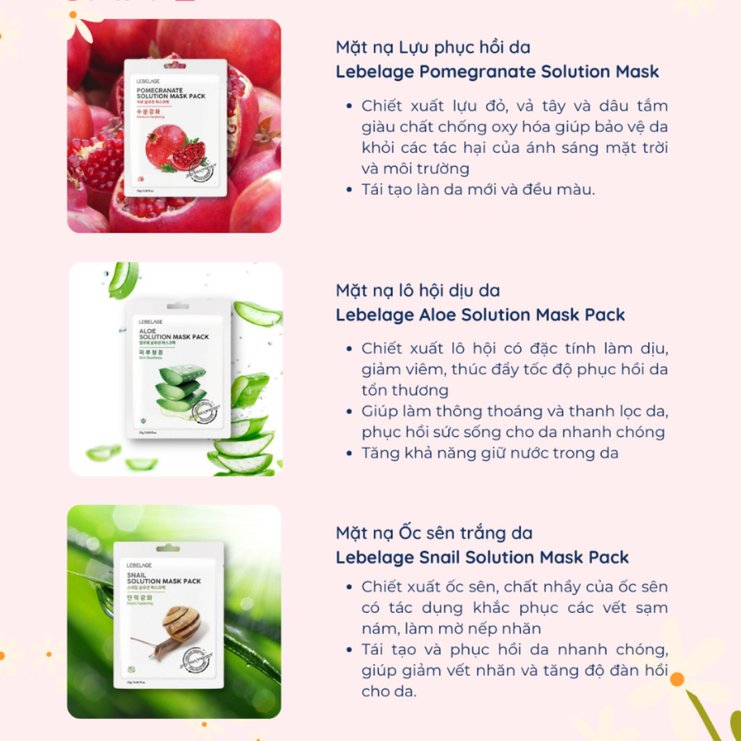 Mặt Nạ LEBELAGE (Nhập Khẩu) 25g là dòng sản phẩm chiết xuất từ thiên nhiên, giúp phục hồi, bổ sung dưỡng chất, tác dụng nhẹ nhàng cho làn da mà không hề gây kích ứng.