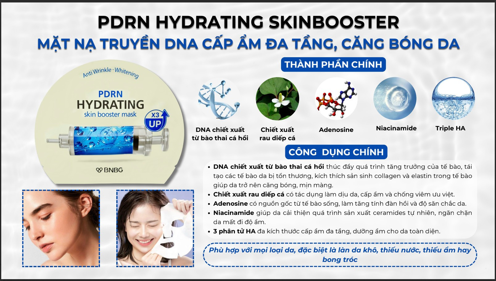 3. Mặt Nạ BNBG PDRN Hydrating Skin Booster Mask Cấp Ẩm Đa Tầng, Dưỡng Da Căng Mịn 30ml: