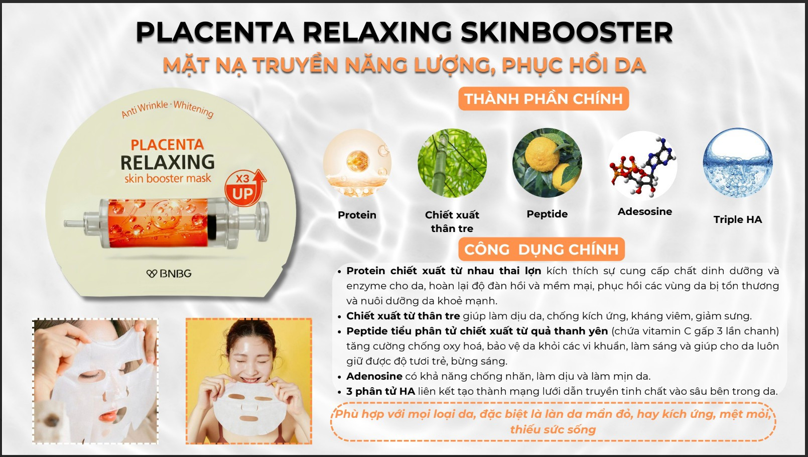 4. Mặt Nạ BNBG Placenta Relaxing Skin Booster Mask Bổ Sung Năng Lượng, Hỗ Trợ Phục Hồi Da 30ml