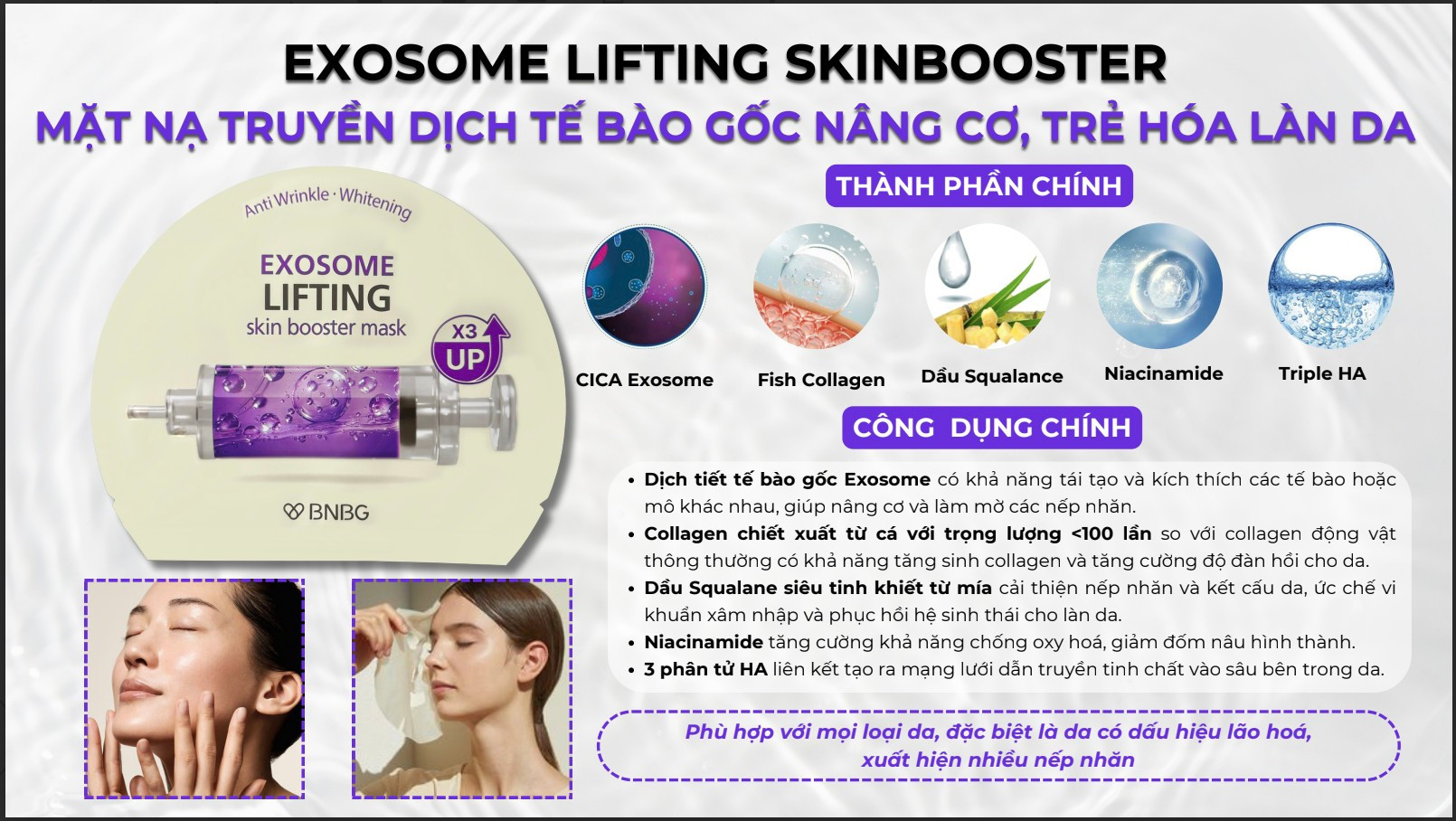 2. Mặt Nạ BNBG Exosome Lifting Skin Booster Mask Nâng Cơ, Dưỡng Da Tươi Trẻ 30ml: