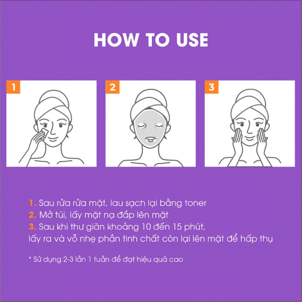 ∞ Hướng dẫn sử dụng: Sau khi làm sạch da, sử dụng nước hoa hồng cần bằng da, lấy miếng mặt nạ ra đắp lên mặt canh đều các góc mắt, mũi, miệng, thư giãn 10-15 phút, tháo mặt nạ và tiếp tục vỗ nhẹ để các dưỡng chất được hấp thụ tối đa.