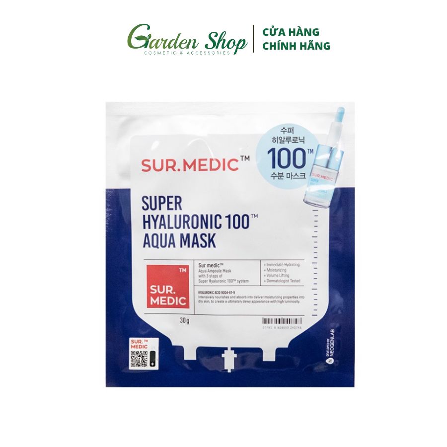 Mặt Nạ Bổ Sung Nước Cấp Tốc Cho Da Sur.Medic Super Hyaluronic 100™ Aqua Mask 30g là dòng mặt nạ đến từ thương hiệu mỹ phẩm Sur.Medic+ của Hàn Quốc, với thành phần từ Hyaluronic Acid và Adenosine tăng cường độ sáng tự nhiên, dưỡng ẩm, căng bóng cho da đồng thời làm dịu, phục hồi, cải thiện độ đàn hồi, săn chắc, ngăn ngừa lão hóa da đem đến làn da ẩm mượt diệu kỳ.
