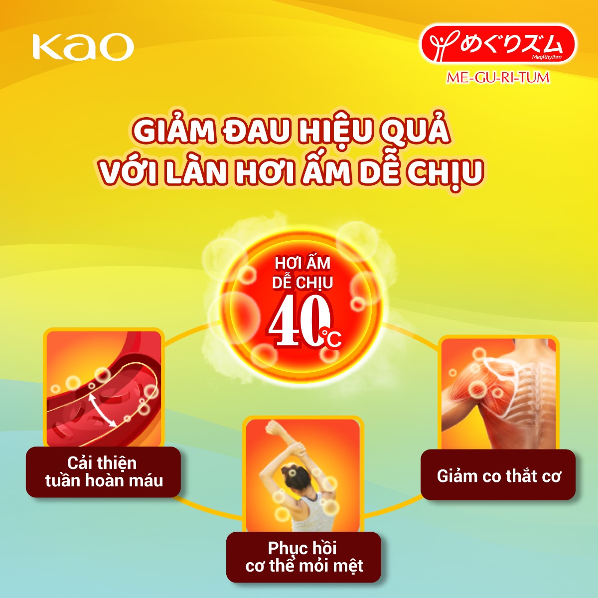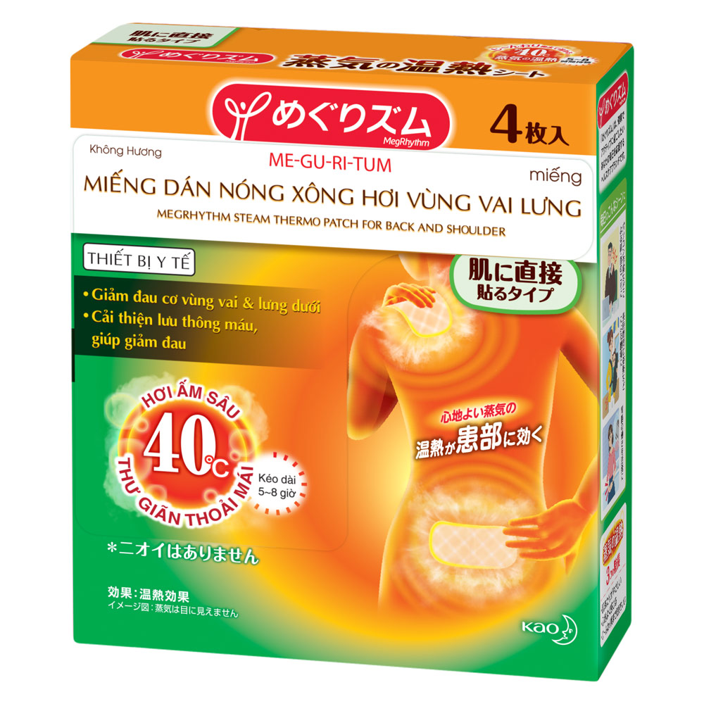 Miếng Dán Nóng Xông Hơi MegRhythm là dòng sản phẩm chăm sóc sức khỏe mới ra mắt từ thương hiệu MegRhythm (Me-gu-ri-tum) của Nhật Bản, được chứng nhận là Thiết bị y tế sẽ giúp cơ thể bạn thoát khỏi tình trạng mệt mỏi, giảm đau và giảm sự căng cứng ở cơ. Sản phẩm sử dụng hơi ấm nhẹ nhàng 40°C kéo dài 5-8 tiếng để giảm đau nhức cơ. Công nghệ tự làm ấm giúp miếng dán tự động ấm lên ngay khi mở bao bì, tiện lợi sử dụng mọi lúc mọi nơi.