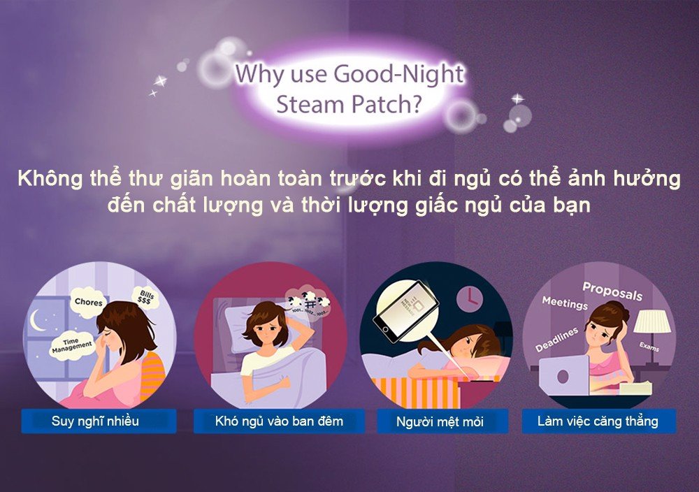 Me-Gu-Ri-Tum Miếng Dán Xông Hơi Good-Night là dòng miếng dán xông hơi đến từ thương hiệu MegRhythm (Me-Gu-Ri-Tum) của Nhật Bản, là giải pháp thư giãn dành cho những người có cuộc sống bận rộn, khó ngủ do căng thẳng, lo âu. Sản phẩm với công nghệ Nhật Bản tỏa hơi nước ấm ở nhiệt độ 40º C giúp thư giãn nhanh chóng và hiệu quả, mang lại giấc ngủ ngon và sâu.