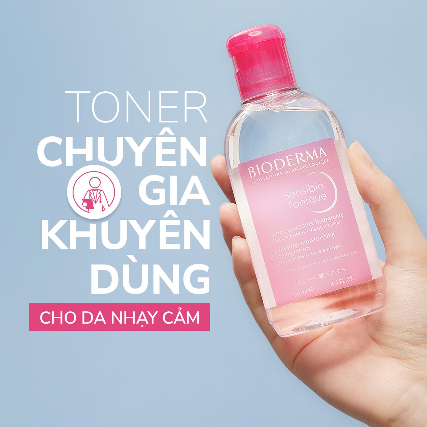 Nước Hoa Hồng Cho Da Nhạy Cảm Bioderma Sensibio Tonique là dòng nước hoa hồng giúp cân bằng độ pH sinh lí tự nhiên trên da đến từ thương hiệu Bioderma, sản phẩm giúp dưỡng ẩm và làm dịu da nhạy cảm, kích ứng với thành phần chính là nước, chiết xuất dưa leo, Allantoin giúp làm dịu da, cấp nước và giảm thiểu tình trạng kích ứng hiệu quả.