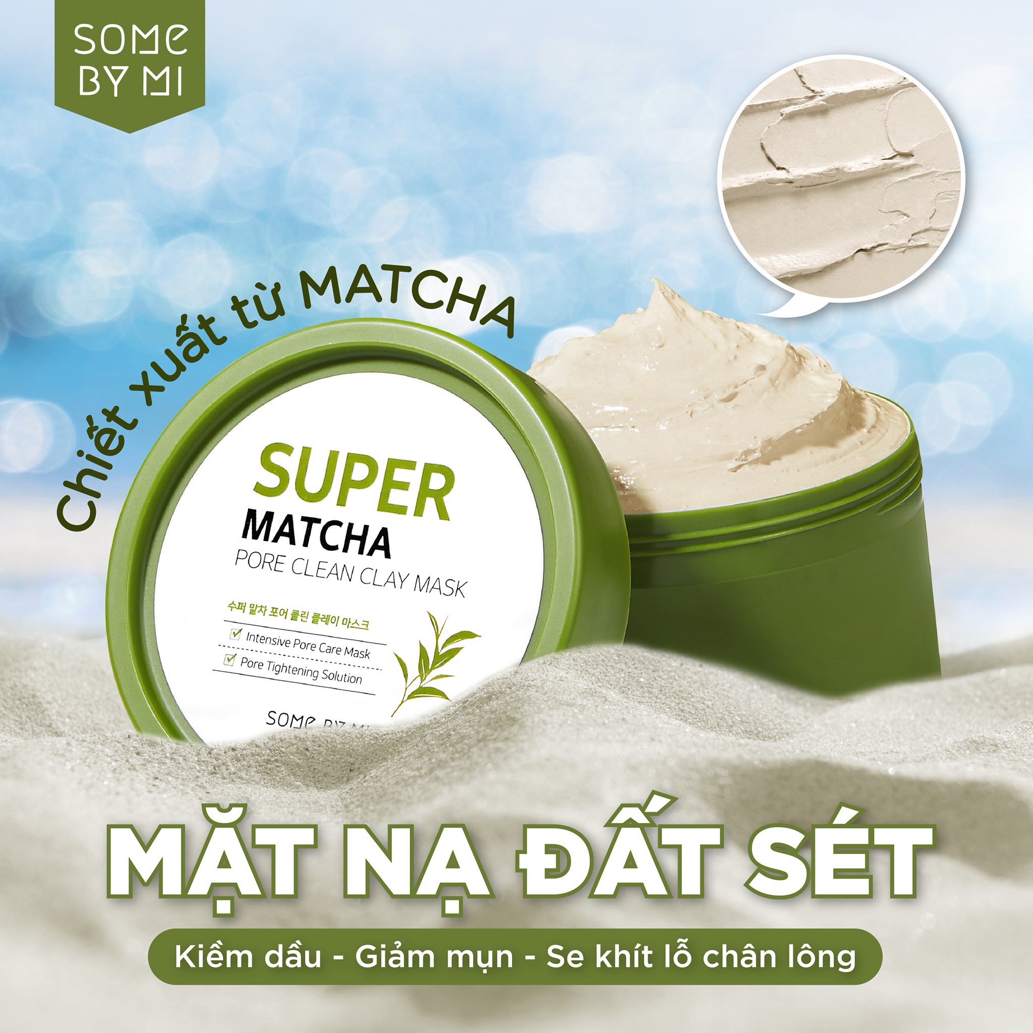 Mặt Nạ Đất Sét Trà Xanh Giúp Làm Sạch, Thu Nhỏ Lỗ Chân Lông Some By Mi Super Matcha Pore Clean Clay Mask là mặt nạ đất sét của thương hiệu Some By Mi giúp làm sạch và thu nhỏ lỗ chân lông với chiết xuất trà xanh, bổ sung BHA nhẹ nhàng loại bỏ lớp da chết giúp da trở nên mềm mại và mịn màng hơn, đồng thời chứa chiết xuất rau má, tràm trà, diếp cá,... giúp làm dịu làn da hiệu quả.