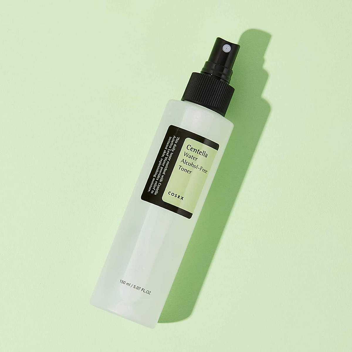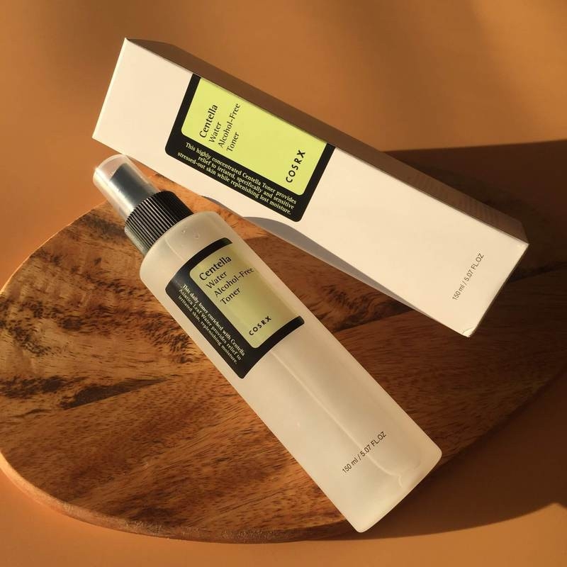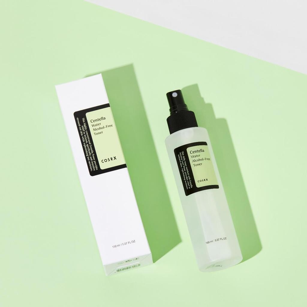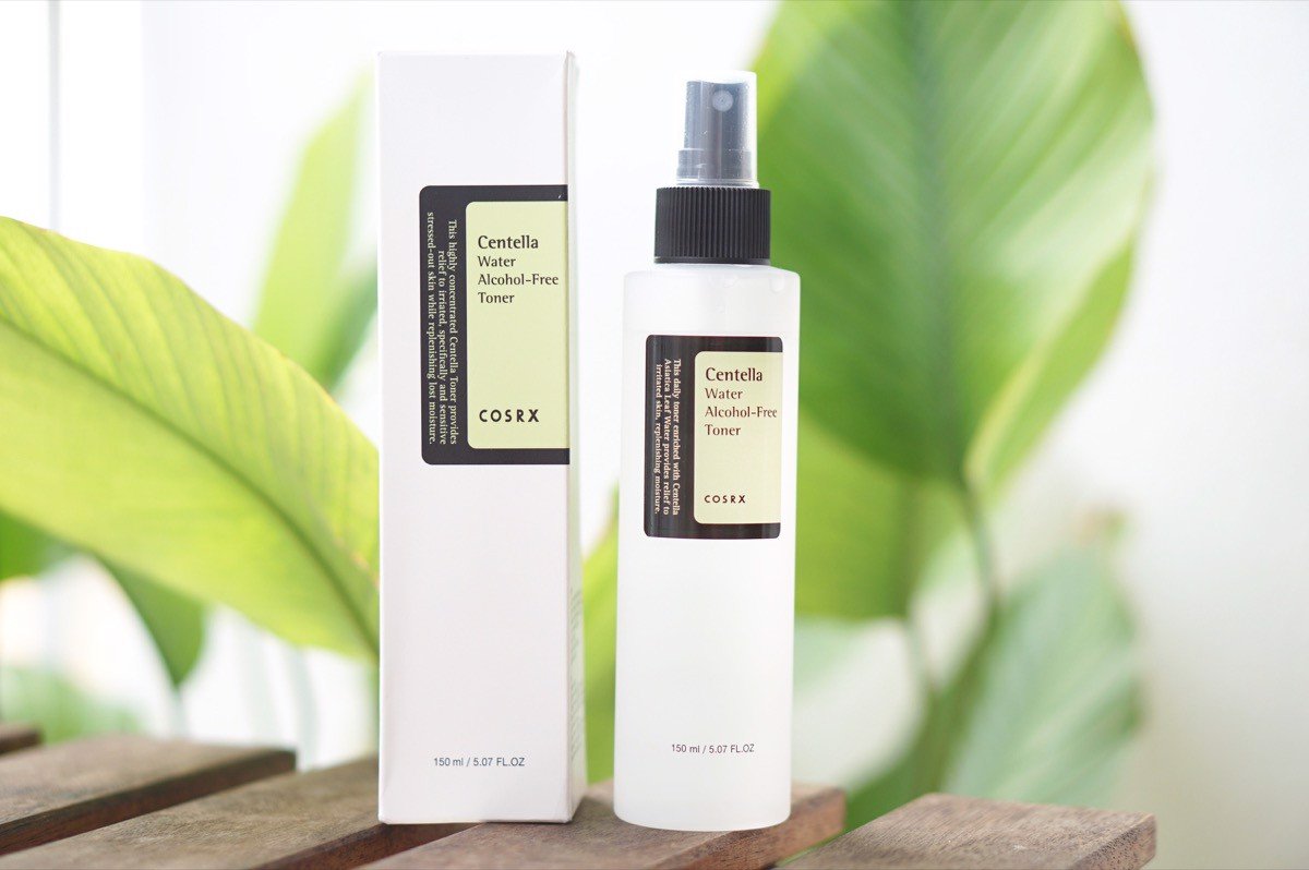 - COSRX Centella Water Alcohol-Free Toner sử dụng nước lá Rau Má (Centella asiatica) thay cho nước tinh khiết giúp làm dịu làn da bị kích ứng, viêm và mẩn đỏ.
