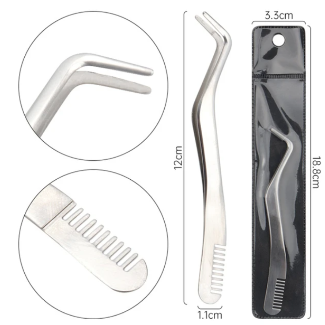 Nhíp Gắp Lông Mi Bằng Thép Không Gỉ Kèm Lược Chải Tiện Dụng sở hữu thiết kế thông minh với hai đầu chức năng riêng biệt, giúp bạn thao tác gắn mi giả một cách linh hoạt và hiệu quả: