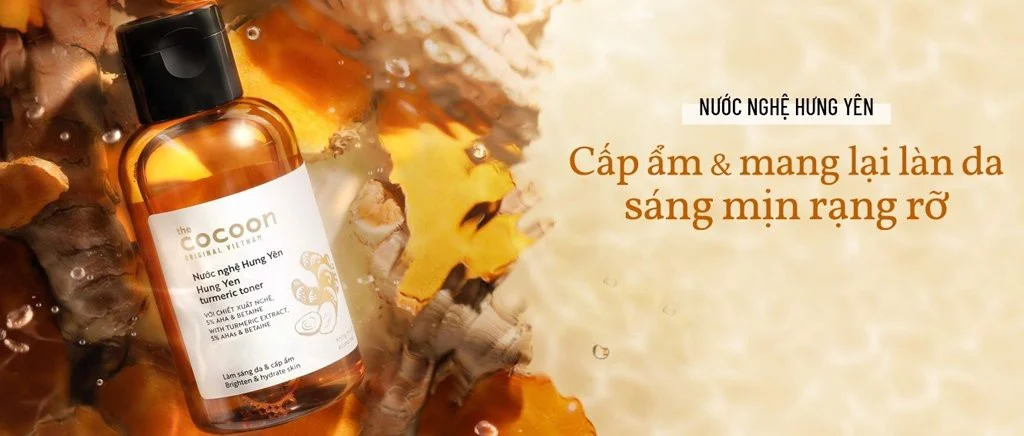 - Nước Hoa Hồng Làm Sáng Da Từ Nước Nghệ Hưng Yên The Cocoon Hung Yen Turmeric Toner chứa chiết xuất và tinh dầu nghệ có hàm lượng hợp chất curcuminoid, khoáng chất và vitamin dồi dào có khả năng kháng khuẩn và nấm, chống viêm, giảm kích ứng trên da, chống oxy hóa tối ưu, làm giảm và ức chế hình thành sắc tố melanin mạnh mẽ, cải thiện các vết thâm mụn, sạm nám, không đều màu, dưỡng da tươi sáng, căng mịn, tăng cường hệ miễn dịch cho da khỏe mạnh.