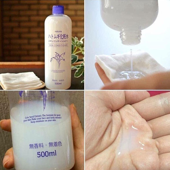 - Nước Hoa Hồng Cấp Ẩm Chiết Xuất Ý Dĩ Naturie Hatomugi Skin Conditioner với thành phần chính là chiết xuất từ hạt Ý Dĩ có tác dụng cấp ẩm, chống viêm, kháng khuẩn, giúp da mịn màng, khôi phục độ săn chắc, se lỗ chân lông, hỗ trợ điều trị mụn, giảm thiểu sự xuất hiện các đốm nâu, làm đều màu da, giữ ẩm và ngăn ngừa các tình trạng khô ráp, bong tróc nhờ chứa nhiều loại Acid béo như Linoleic acid, palmitic acid, stearic acid và các vitamin như B1, B12 và E, protein và các hoạt chất steroid tự nhiên