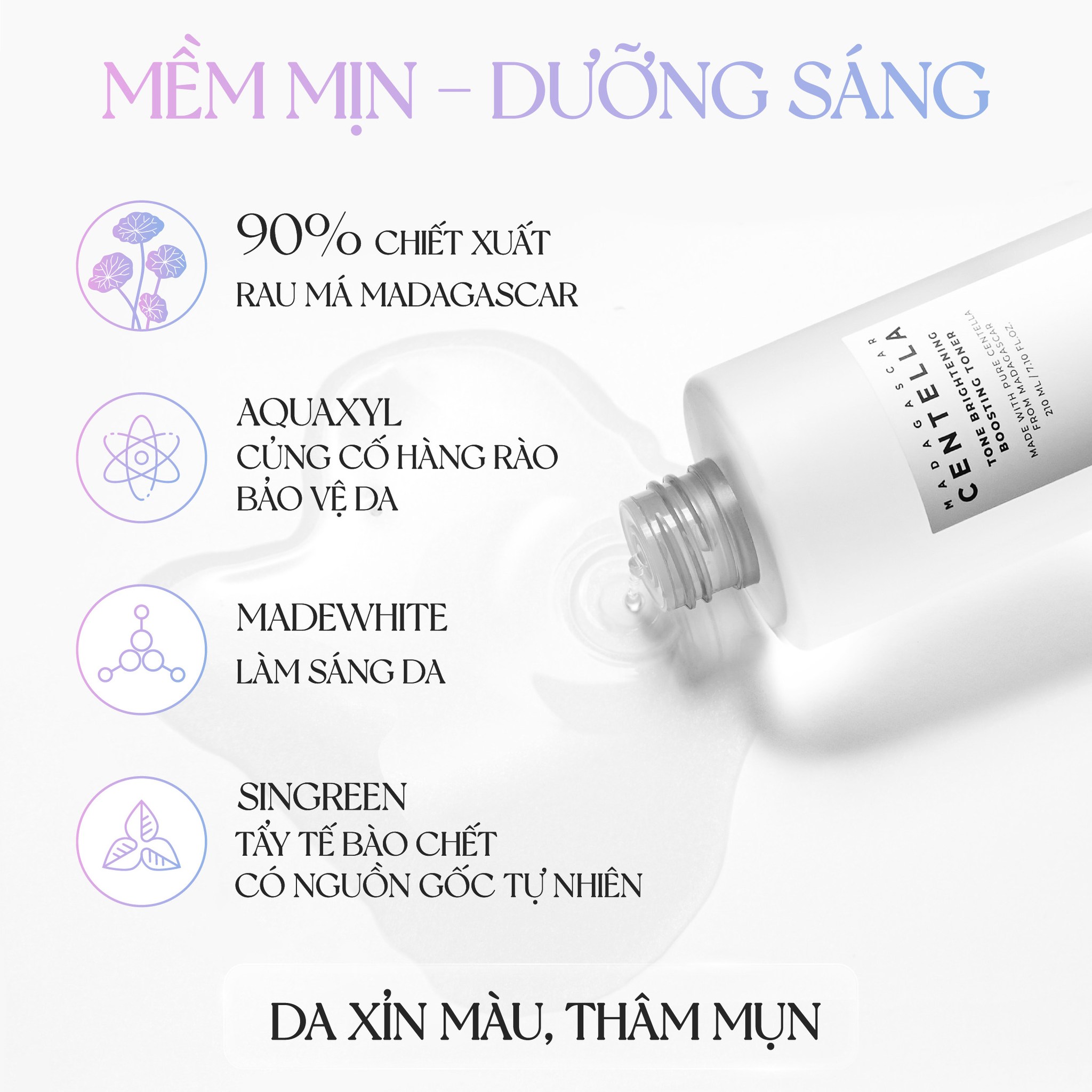 - Nước Hoa Hồng Cân Bằng, Tăng Cường Dưỡng Sáng Da Skin1004 Madagascar Centella Tone Brightening Boosting Toner hiện đã có mặt tại Garden Shop có chức năng làm sáng hiệu quả cao, chiết xuất rau má được tăng lên đến 90% để tăng cường khả năng chăm sóc và làm dịu da từ sâu bên trong.