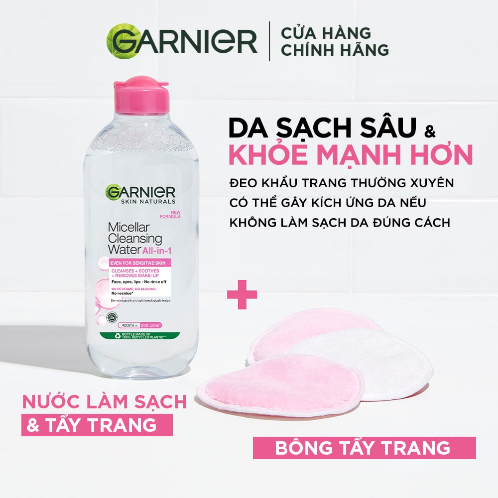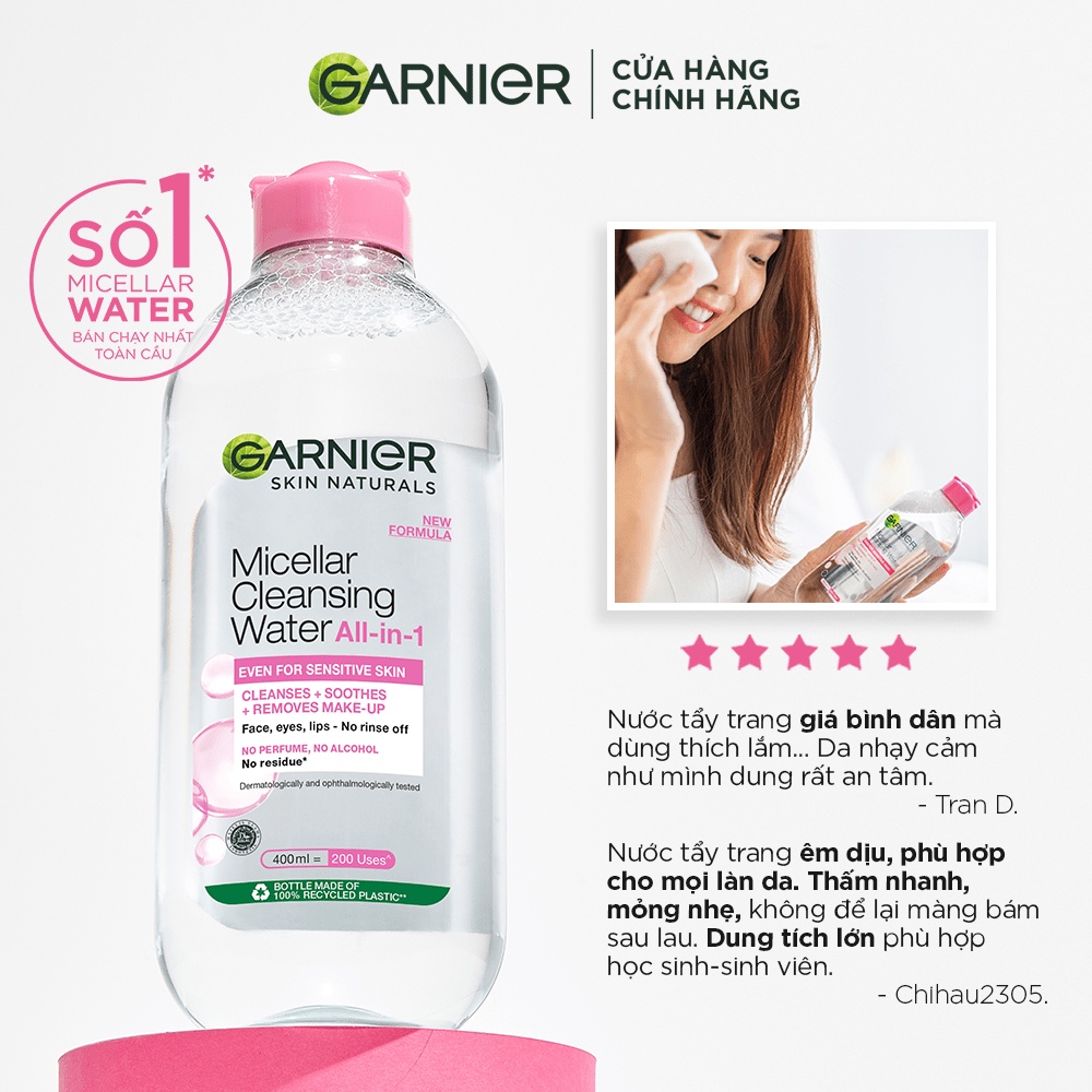 Garnier Micellar Cleansing Water For Sensitive Skin là dòng sản phẩm nước làm sạch và tẩy trang đa năng được thiết kế chuyên biệt dành cho làn da nhạy cảm, giúp làm sạch hiệu quả mà không gây tổn hại cho làn da của bạn. Sản phẩm chăm sóc da 3 trong 1 này có thể được sử dụng như một sản phẩm làm sạch, toner hoặc tẩy trang - với công nghệ Micelles chứa các hạt phân tử mi-xen giúp loại bỏ bụi bẩn, dầu thừa và lớp trang điểm theo cơ chế hoạt động của nam châm mà không cần chà xát mạnh, không cần rửa lại với nước.