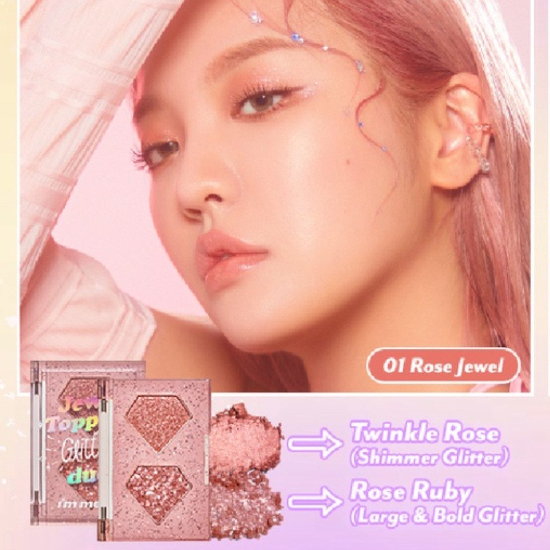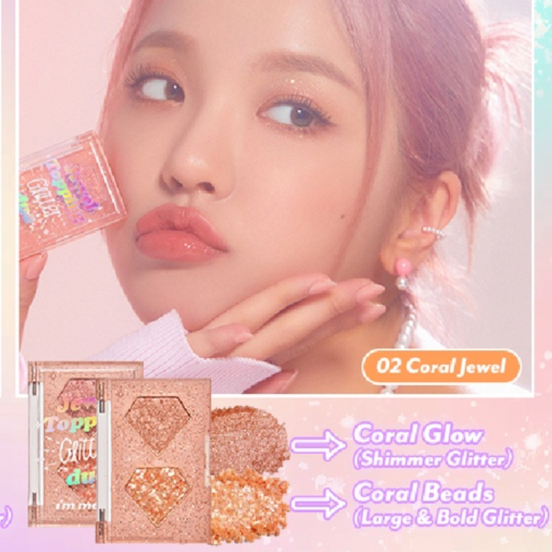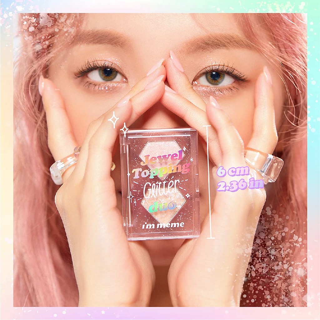 - Hiệu ứng nhũ kim tuyến lấp lánh: Nhờ có những hạt nhũ kim tuyến lấp lánh, I'm Meme Jewel Topping Glitter Duo 3g giúp đôi mắt bạn thêm long lanh và thu hút mọi ánh nhìn.