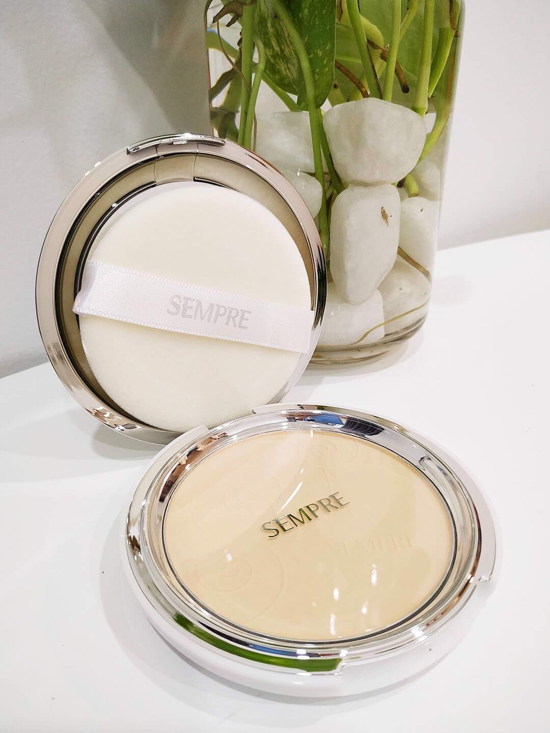 - Phấn phủ Geo Sempre Happy & Please Pact – Được cấu trúc từ những hạt phấn rỗng siêu mịn chiết xuất từ tinh chất ngọc trai và rong biển .dễ dàng tạo lớp trang điểm khô thoáng và mỏng mịn trên bề mặt da.