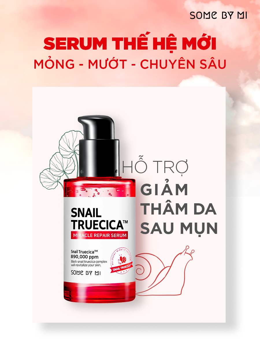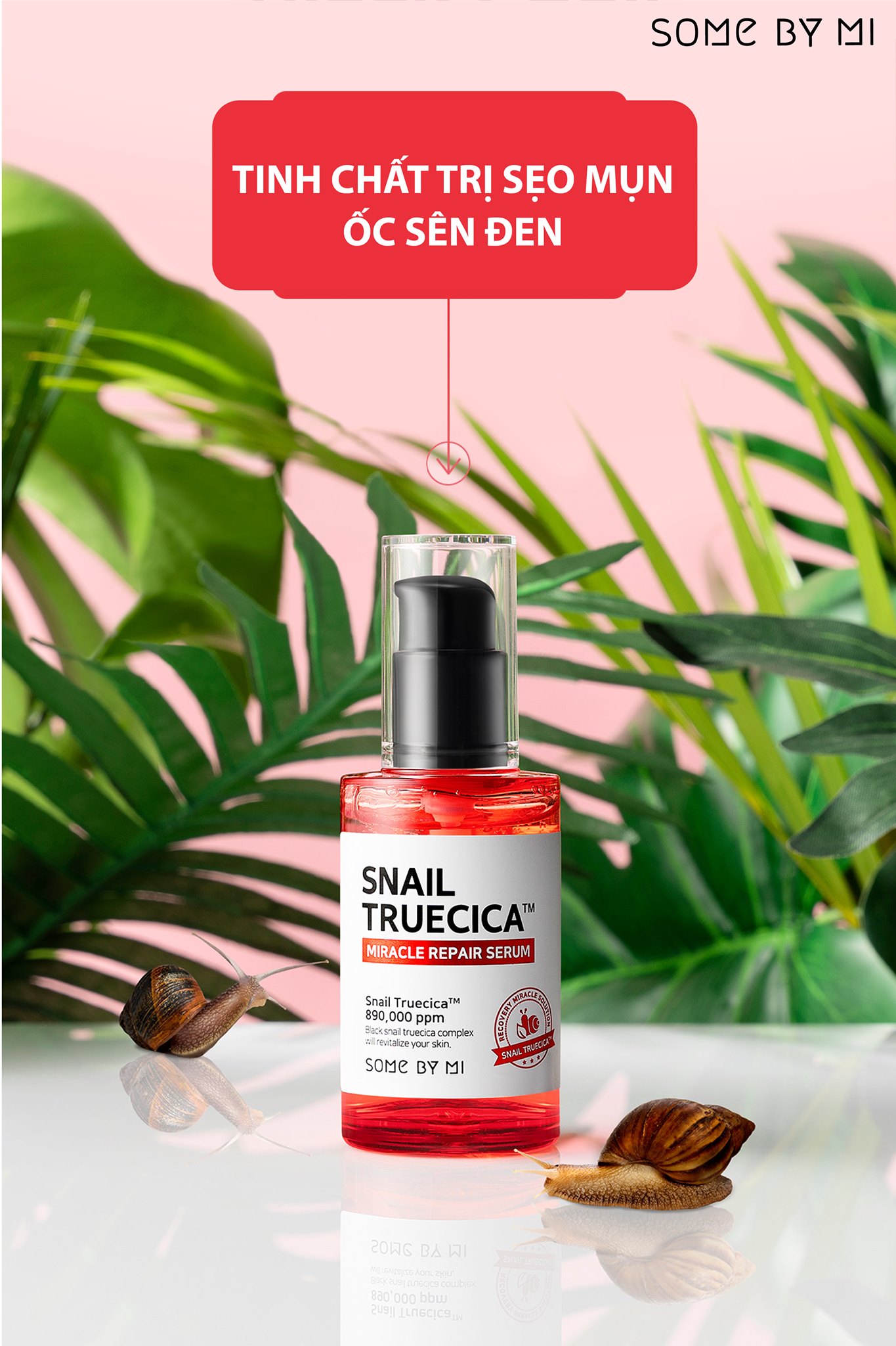 Tinh Chất Ốc Sên Phục Hồi Da, Mờ Thâm Sẹo Hàn Quốc Some By Mi Snail Truecica Miracle Repair Serum 50ml là tinh chất dưỡng thuộc dòng Snail Truecica của thương hiệu Some By Mi giúp phục hồi và làm lành sẹo chứa 88% dịch nhầy ốc sên đen và công nghệ độc quyền TrueCica giúp làm lành các tổn thương trên bề mặt da, cải thiện tình trạng sẹo lõm đồng thời ngăn ngừa tình trạng da ửng đỏ do kích ứng,mụn viêm và ô nhiễm môi trường.