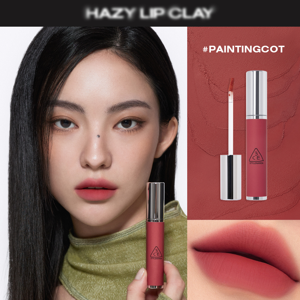 Son Kem Lì, Mịn Mượt Môi 3CE Hazy Lip Clay là son kem lì của thương hiệu 3CE với kết cấu son mịn lì, bám màu đẹp, lên màu chuẩn, không trôi và dễ tán đều lên môi. Bảng màu son đa dạng từ những tông màu đa dạng cho các bạn dễ lựa chọn những tông màu phù hợp với trang điểm của bạn.
