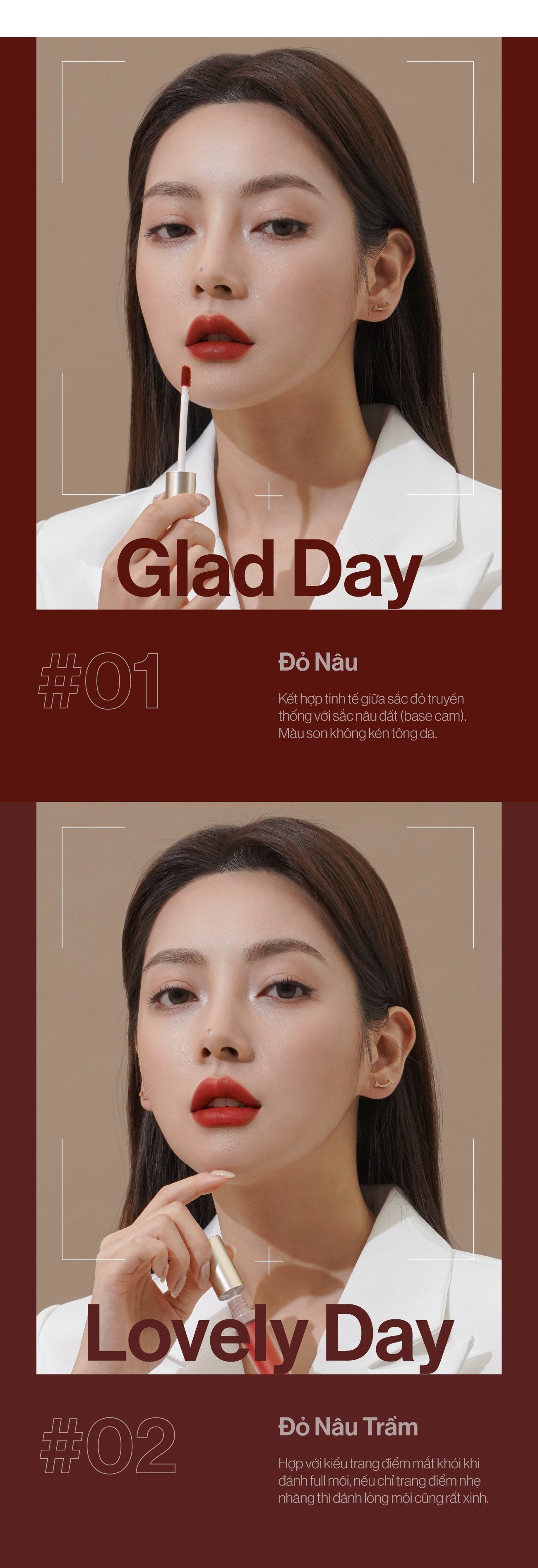 • 01 Glad Day: Gam màu đỏ nâu không kén tông da.
