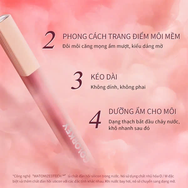 - Kết cấu tint nước mỏng nhẹ, dễ tán đều trên môi.