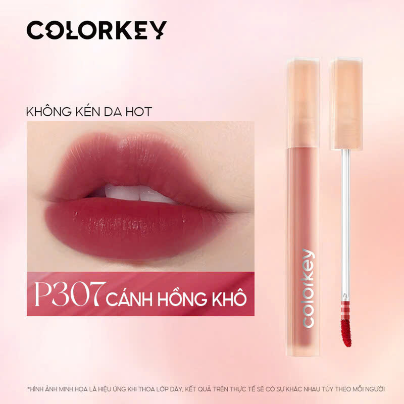 Son Kem Lì Colorkey Soft Matte Water Tint 1.8g đến từ thương hiệu Colorkey - Trung Quốc. Sản phẩm có kết cấu siêu nhẹ, lướt trên môi mềm mại như nước, nhanh chóng tạo hiệu ứng lì tự nhiên nhưng vẫn giữ được độ ẩm cho đôi môi. Bộ sưu tập đa dạng màu sắc, giúp tôn lên vẻ đẹp tự nhiên và phù hợp với nhiều phong cách trang điểm.
