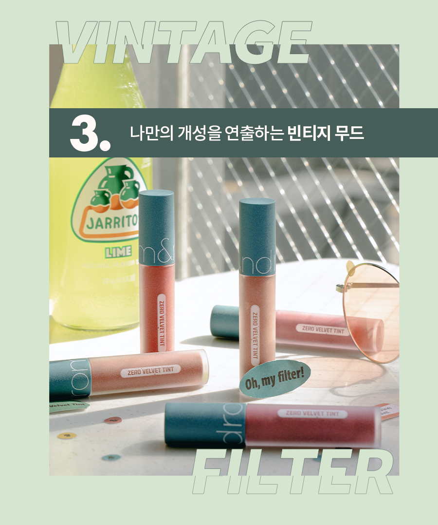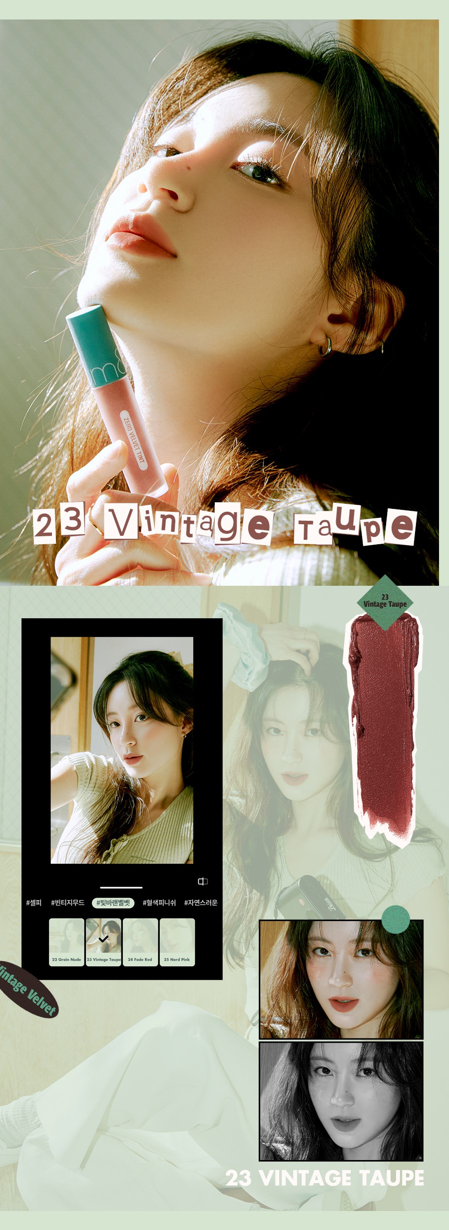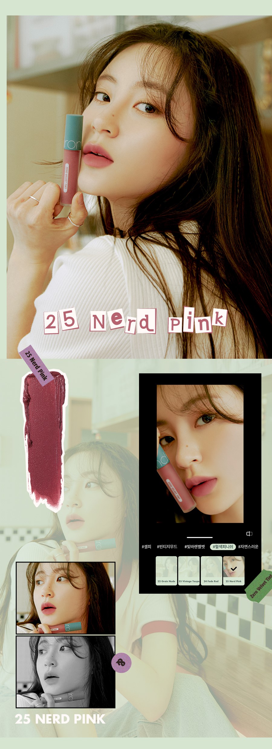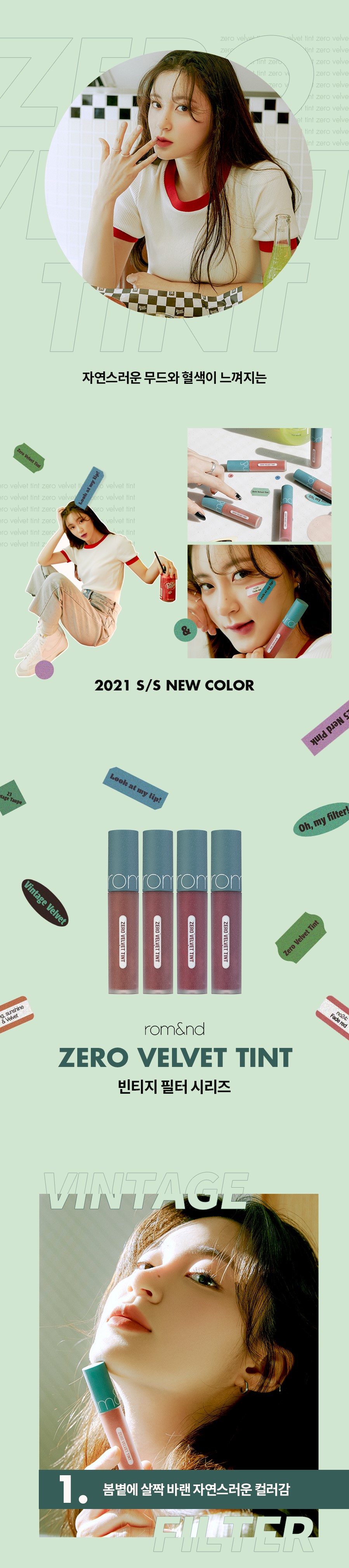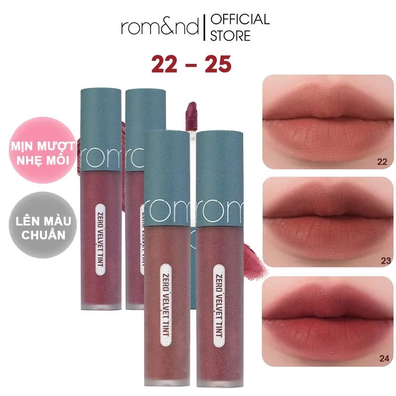 - Son kem lì Romand Zero Velvet Tint phiên bản Vintage Filter Series có tone màu mang hơi hướng vintage nhuộm nắng tạo nên nét đặc trưng với những tông màu trendy hợp mốt, nổi bật nét cá tính của bạn