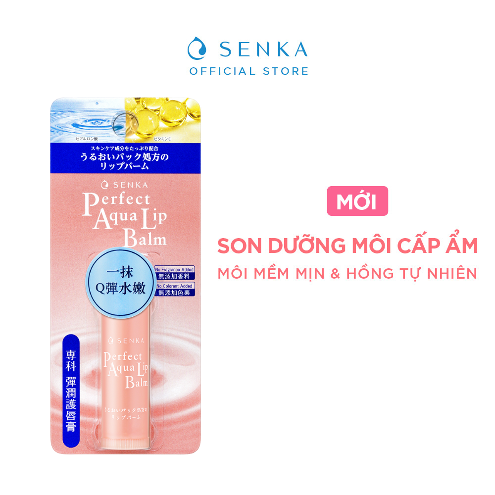- Son Dưỡng Cấp Ẩm Senka Perfect Aqua Lip Balm còn bổ sung Vitamin E cải thiện đôi môi xỉn màu, kém tươi tắn trở nên hồng hào tự nhiên hơn.