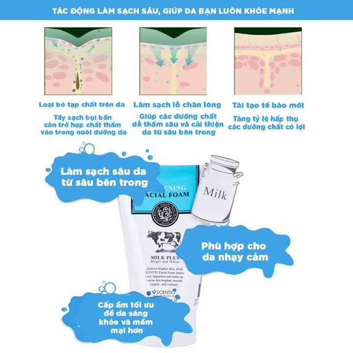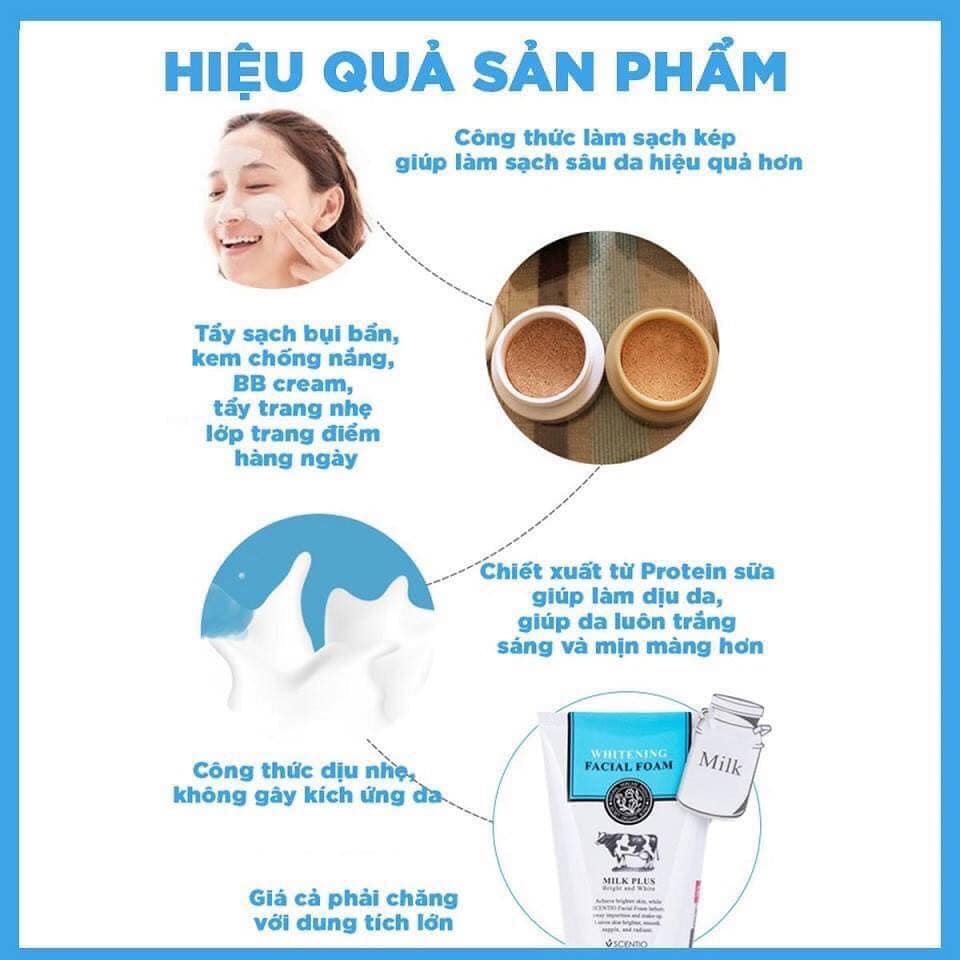 - Sữa Rửa Mặt Dưỡng Trắng Scentio Milk Plus Whitening Facial Foam có chứa các thành phần được chiết xuất từ protein sữa thuỷ phân. Đây được xem là thành phần tinh khiết, đem lại các dưỡng chất cần thiết cho da. Sản phẩm này dễ dàng tạo bọt và thẩm thấu nhanh vào da.