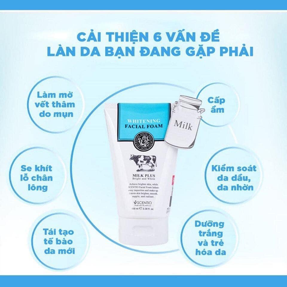 Sữa Rửa Mặt Dưỡng Trắng Scentio Milk Plus Whitening Facial Foam là sản phẩm kem dưỡng có xuất xứ từ Thái Lan và được đánh giá là dòng sữa rửa mặt có công dụng hiệu quả trong việc làm trẻ hoá làn da, dưỡng trắng da cũng như bảo vệ da khỏi các tác nhân gây hại và làm sạch da sâu từ bên trong lỗ chân lông.