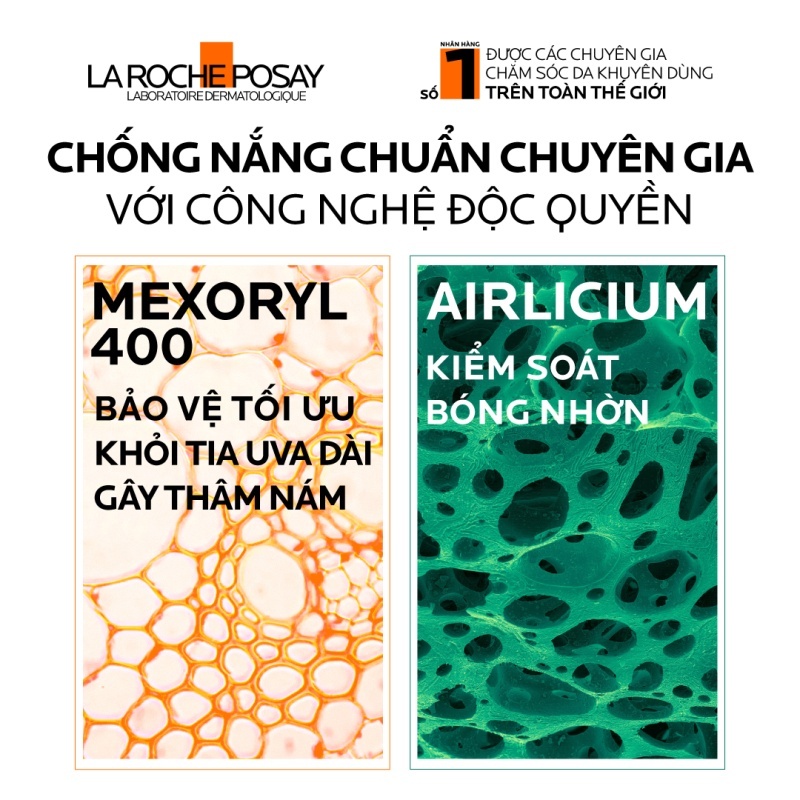 Sữa chống nắng La Roche-Posay Anthelios Uvmune 400 chứa 8 màng lọc, trong đó có màng lọc phổ rộng độc quyền Mexoryl 400 giúp bảo vệ da khỏi tia UVA dài - tác nhân chính gây tình trạng thâm nám, lão hóa.