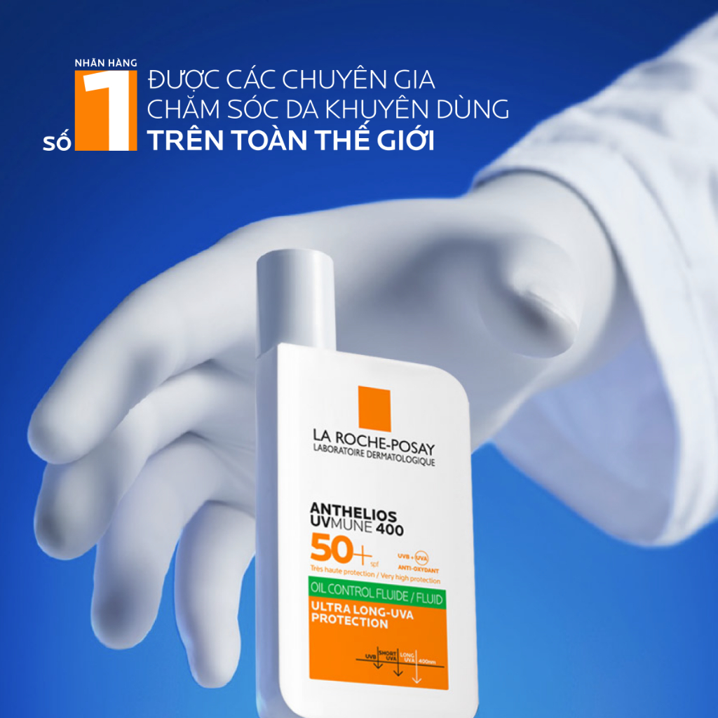 Sữa Chống Nắng Cho Da Dầu Mụn, Hạn Chế Thâm Nám La Roche-Posay Anthelios UVMUNE 400 Oil Control Fluid là kem chống nắng dạng sữa dành cho da dầu giúp kiểm soát bóng nhờn và bảo vệ da trước tác hại từ ánh nắng & ô nhiễm, hạn chế các tác nhân gây thâm nám thuộc thương hiệu dược mỹ phẩm La Roche-Posay đến từ Pháp.