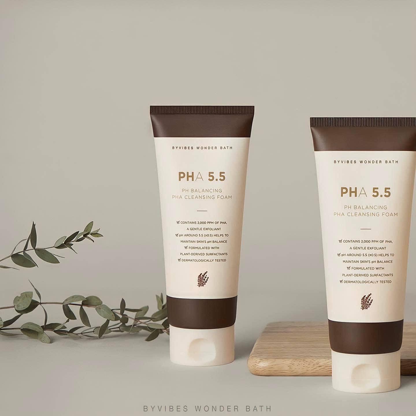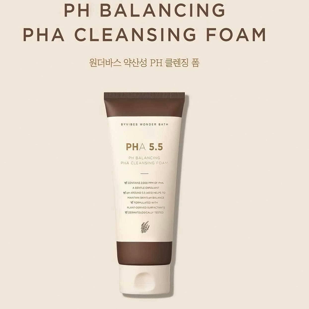 Sữa Rửa Mặt Byvibes Wonder Bath PHA 5.5 là dạng sữa rửa mặt tạo bọt có độ PH 5.5 đến từ thương hiệu Byvibes Wonder Bath chăm sóc da được yêu thích tại Hàn Quốc, chứa thành phần PHA giúp làm sạch da, ngăn ngừa mụn và hỗ trợ điều trị mụn hiệu quả. Bên cạnh đó, sản phẩm còn chứa thành phần tự nhiên dịu nhẹ cho da nên không làm khô da mà còn giúp giữ ẩm cho da được các chuyên gia da liễu khuyên dùng.
