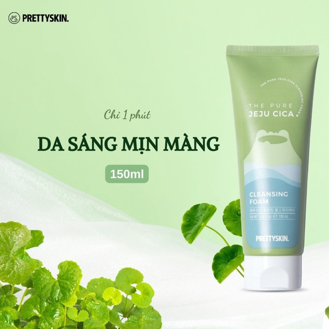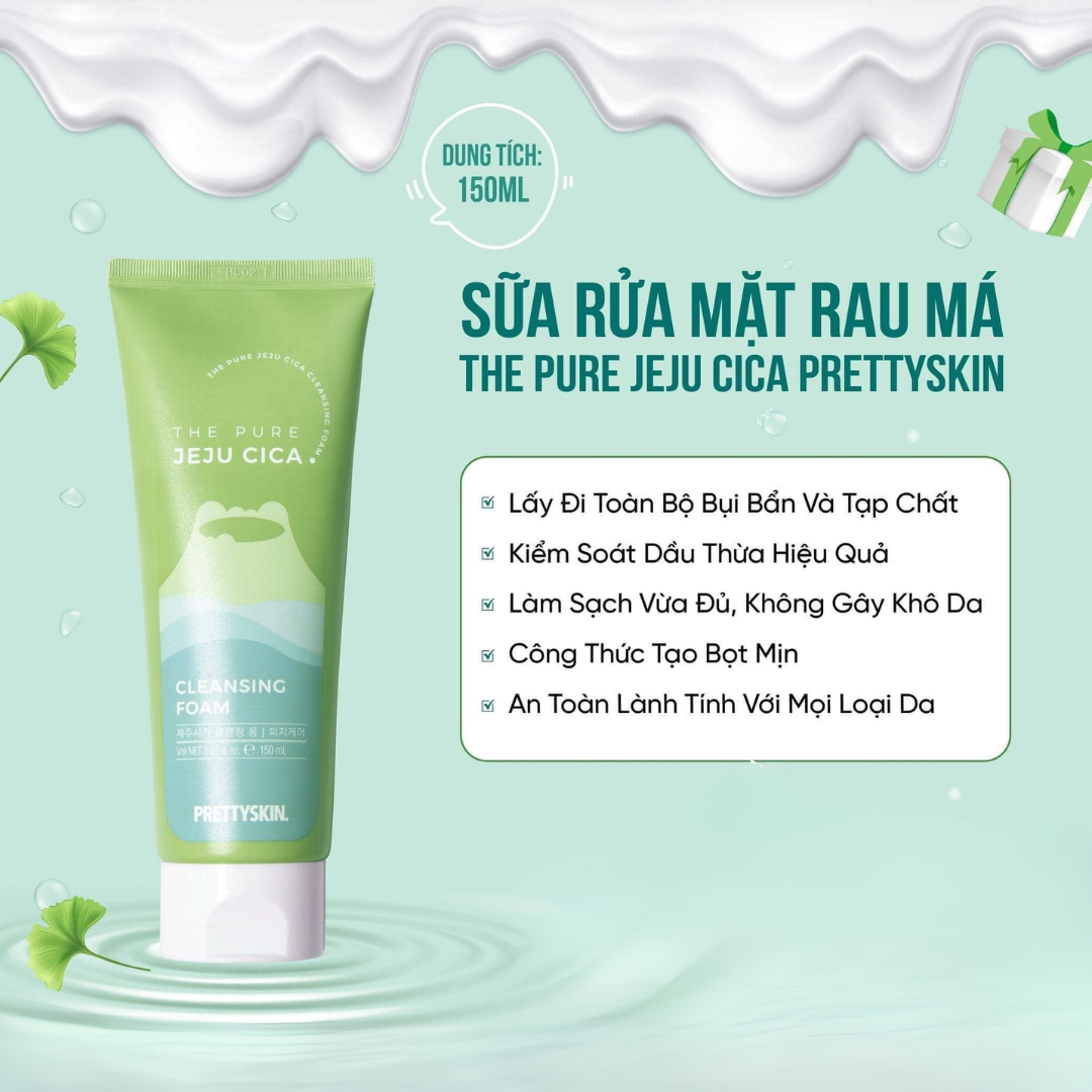 Sữa Rửa Mặt Rau Má Pretty Skin The Pure Jeju Cica Cleansing Foam giúp làm sạch sâu, loại bỏ dầu thừa và bã nhờn. Đồng thời giúp làm dịu da, ngừa mụn và thích hợp cho da nhạy cảm. Sữa Rửa Mặt Rau Má Pretty Skin The Pure Jeju Cica Cleansing Foam mang đến cho bạn sự dịu nhẹ, mát lạnh của các thành phần tự nhiên giúp làm sạch sâu mà vẫn giữ được độ ẩm mà không làm khô hay kích ứng da.