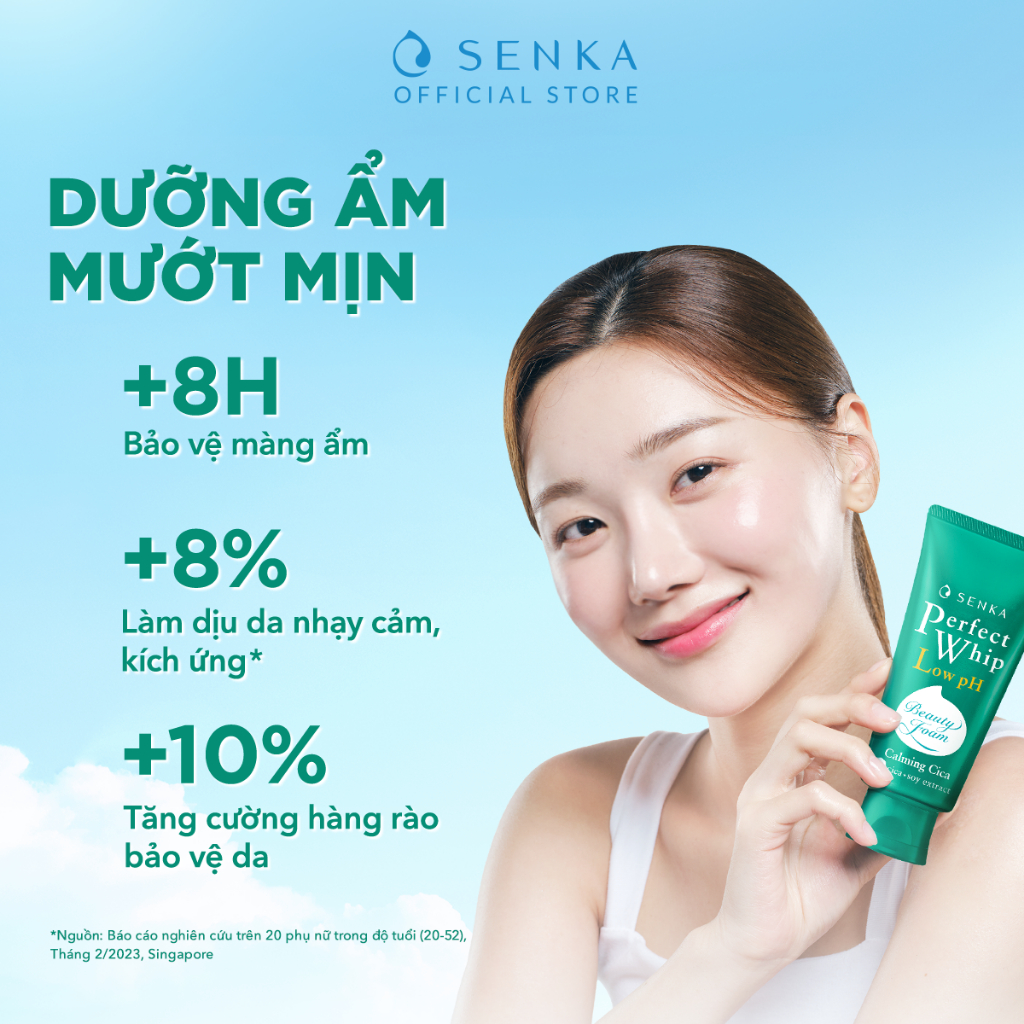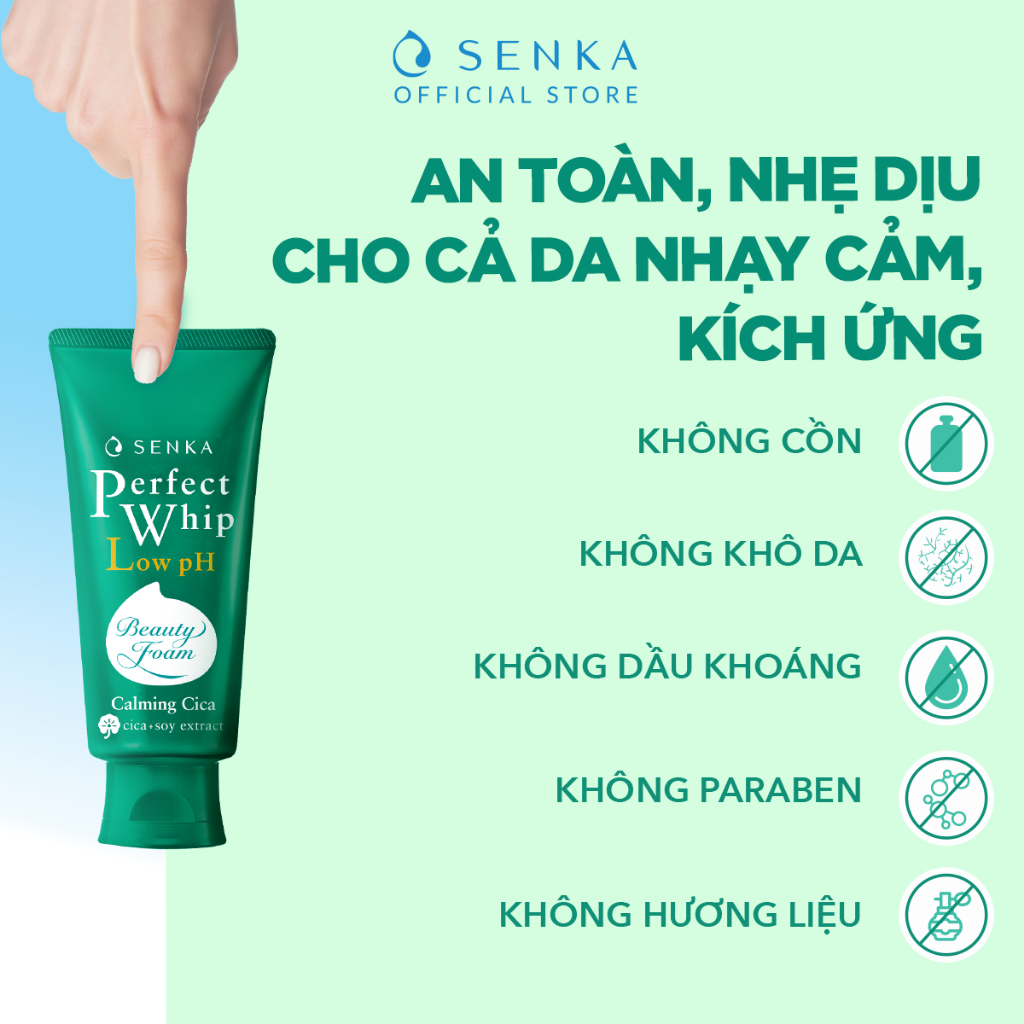 - Sữa Rửa Mặt Rau Má Lành Tính Seka Perfect Whip Low pH Calming Cica 100g với siêu bọt dưỡng da chứa TRIỆU HẠT BỌT SIÊU NHỎ từ tơ tằm trắng chứa hạt bọt siêu nhỏ nhẹ nhàng len lỏi sâu bên trong lỗ chân lông làm sạch bụi bẩn, bụi mịn, bã nhờn, đồng thời lấy đi tế bào da chết & cả cặn trang điểm, cho da sạch sâu và tươi tắn.